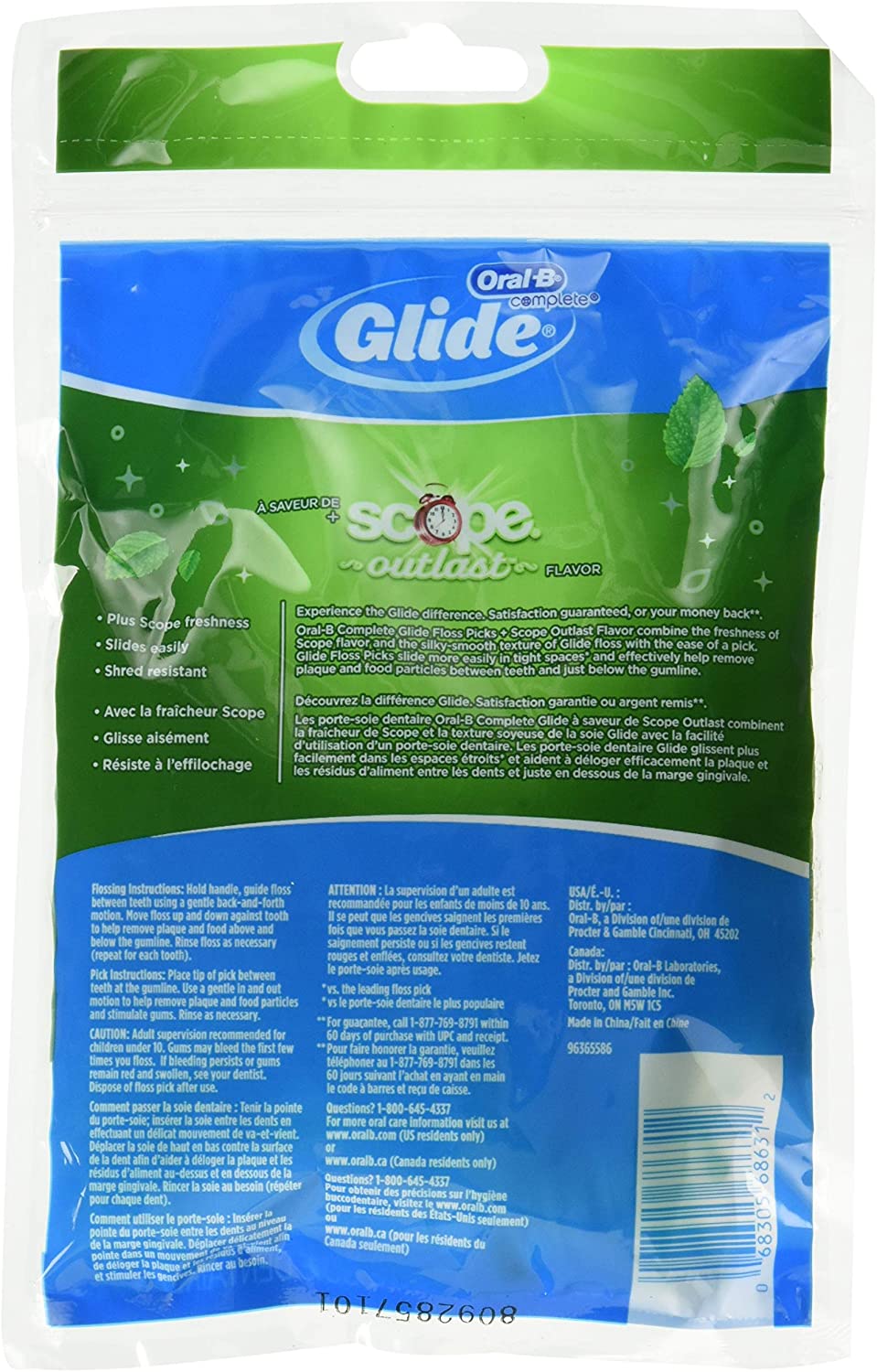 - Slides up to 50% more easily in tight spaces with the power of Oral-B Glide + the freshness of Scope Outlast flavor in the convenience of a floss pick. the leading floss picks