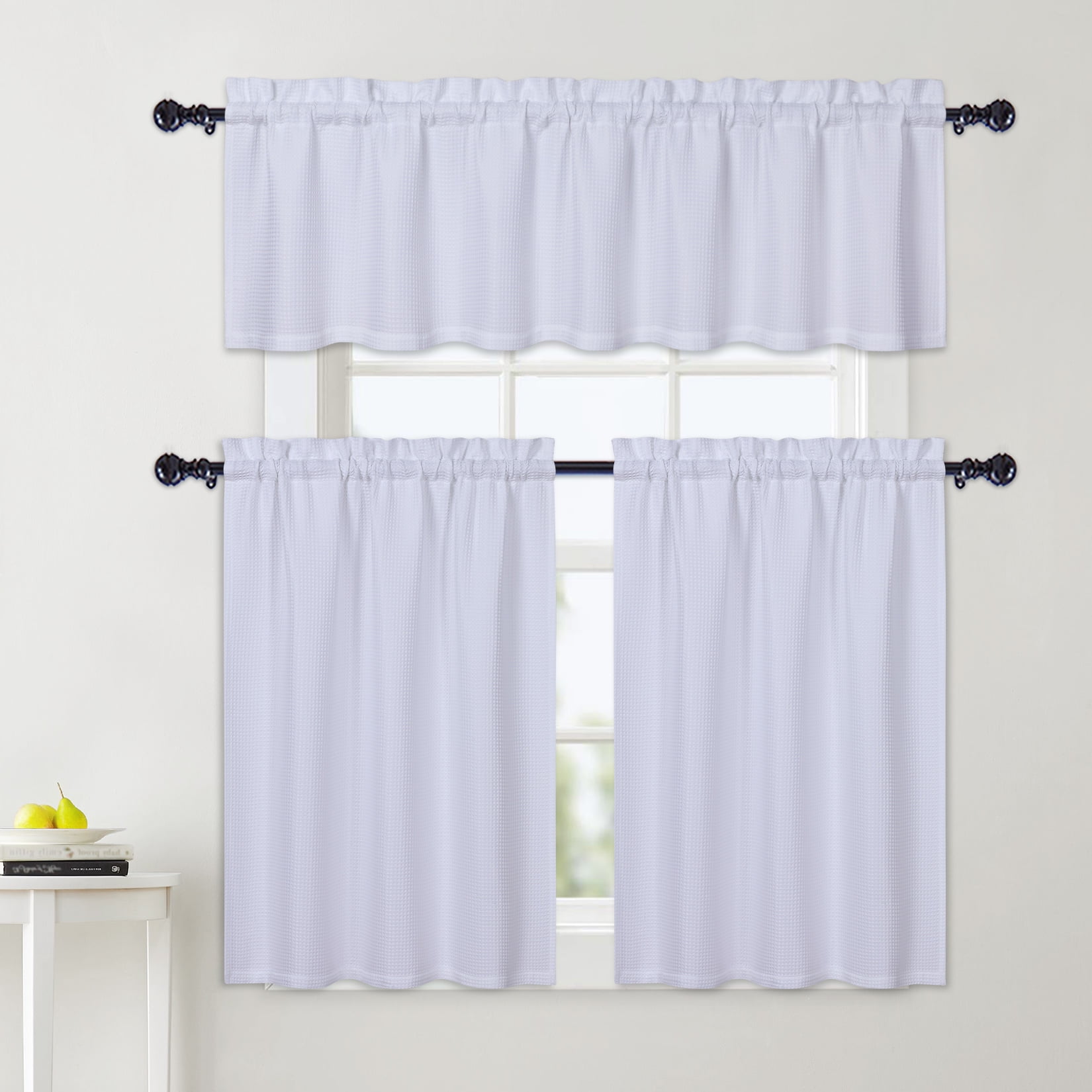- 【210GSM THICKEN FABRIC CURTAINS】 Our white window tier curtains are made of waterproof waffle weave textured plaid fabric, soft touch, the casual weave fabric creates perfect room darkening and privacy assuring