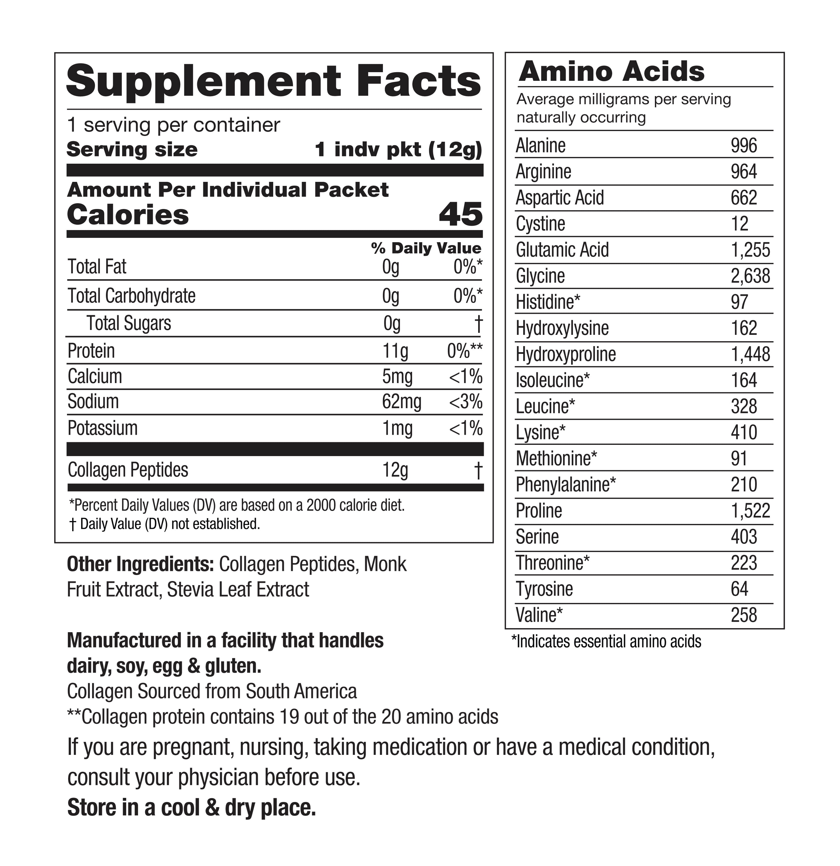 - 11 GRAMS OF PROTEIN – Support a healthy, morning coffee routine with daily protein from collagen and only 45 calories per stick pack. No protein from dairy, whey or soy.
