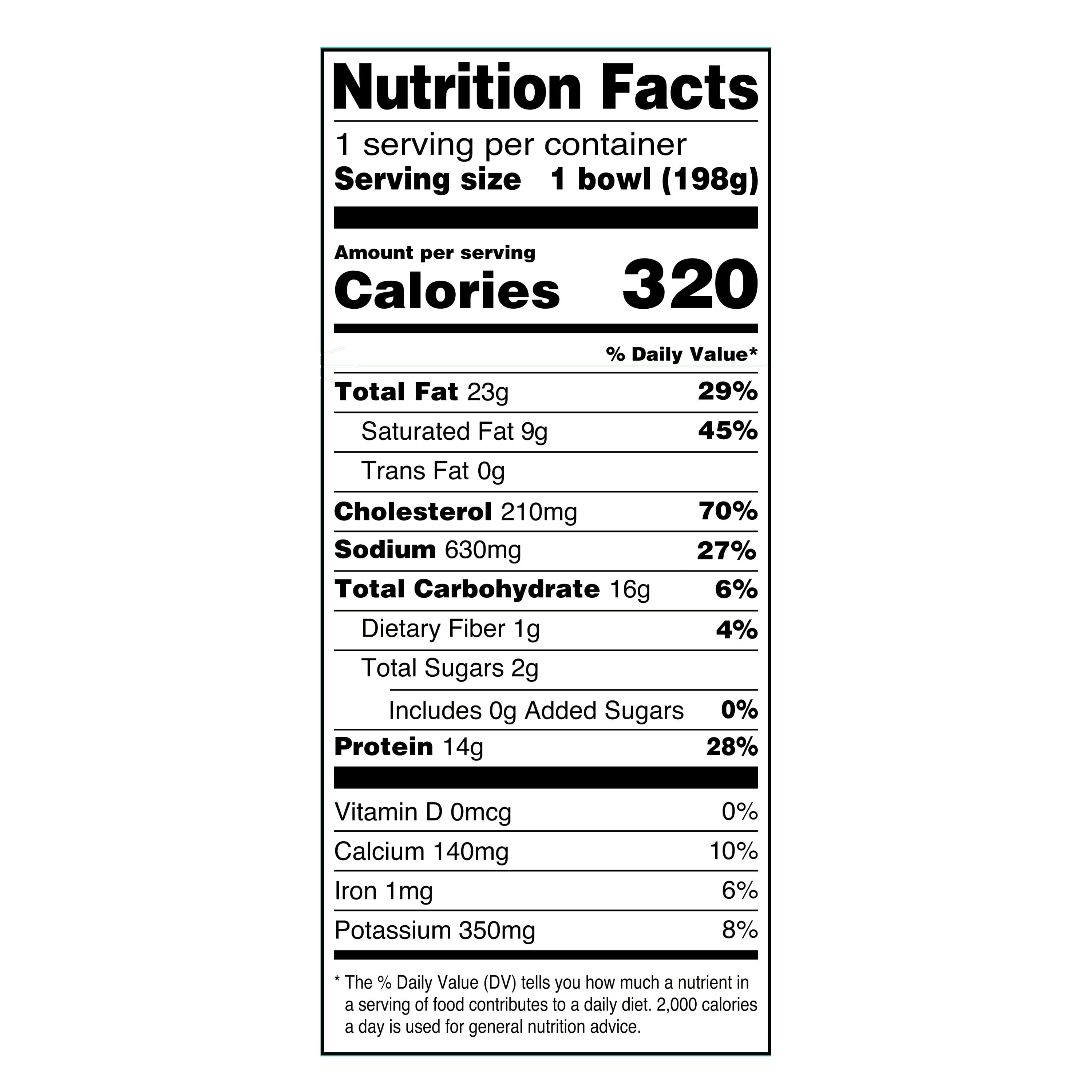The Great Value Sausage and Gravy Breakfast Bowl is a fantastic way to start off your day. It’s filled with hearty ingredients such as sausage crumbles, fluffy scrambled eggs, savory diced potatoes, and shredded cheese, and is covered with an appetizing country gravy. Great for those mornings when you don’t have a lot of time, these sausage and gravy breakfast bowls are ready to eat after just four minutes in the microwave, so you can have a hearty breakfast in no time and be ready to start your morning. This sausage and gravy breakfast bowl is packed with 15 grams of protein to keep you fueled throughout the day. Pick up some Great Value Sausage and Gravy Breakfast Bowls to stock the freezer today.