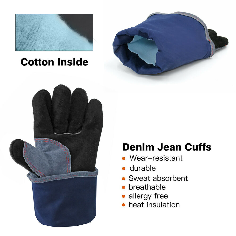 HITBOX 16′ Leather MIG TIG Welding Gloves Heat Resistant Lined Welders Gloves MIG/Stick Welding Gloves