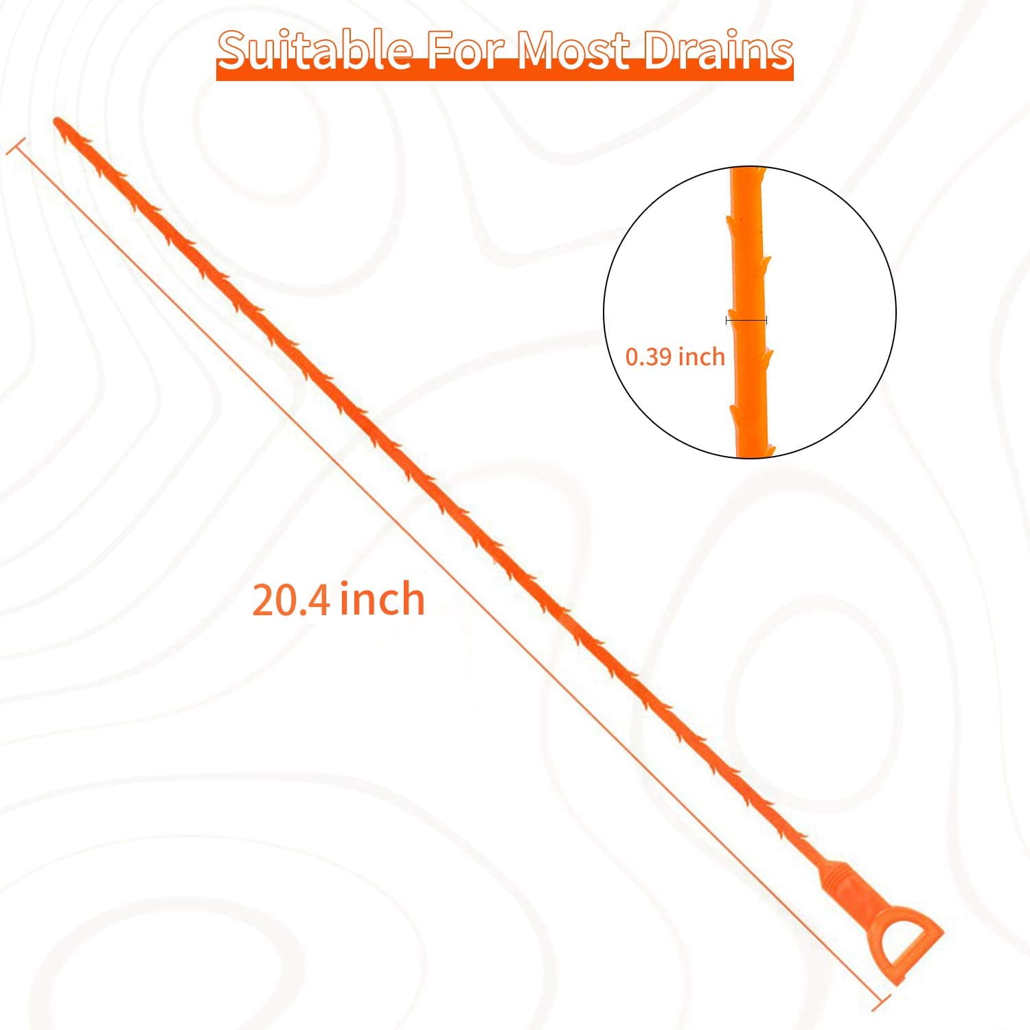A REAL PRACTICAL PLUMPING TOOL The Huryfox drain snake is the "apartment must haves" necessity. It’s made of high-quality PE material, which can be easily bent into different angles while ensuring hardness. The length reaches 20 inches, long enough to go deep into pipes, and it’s only 0.39 inches wide to fit most drains; Multi-zigzag shape design: can effectively capture hair and other obstacles. It can effectively clean and unclog all kinds of drains, you can use it to clean kitchen sinks, wash basins, shower room drains, and garden drains. There are six drain snakes in 1 package; they are reusable and durable, easy to store, and you can use them for years.