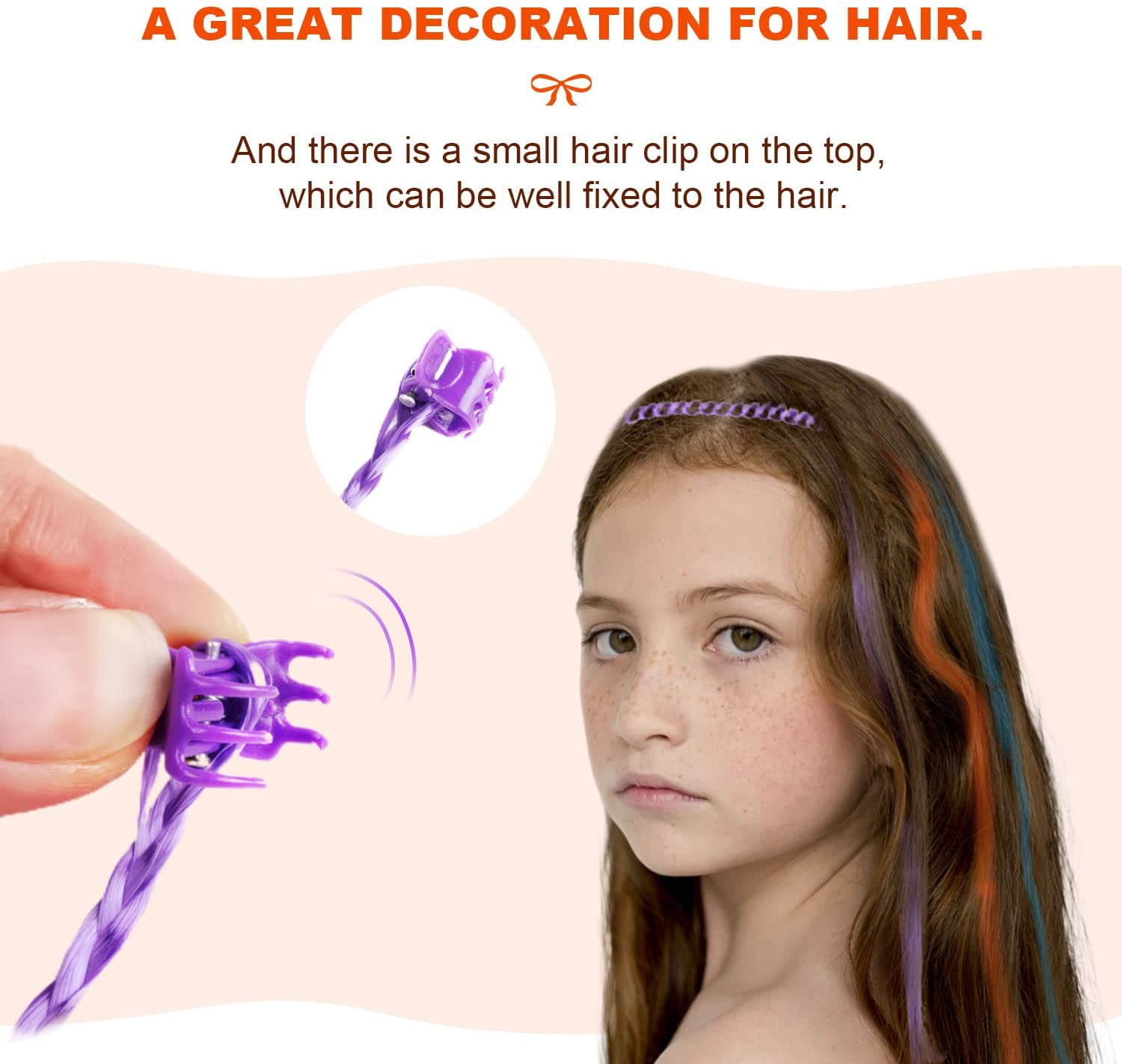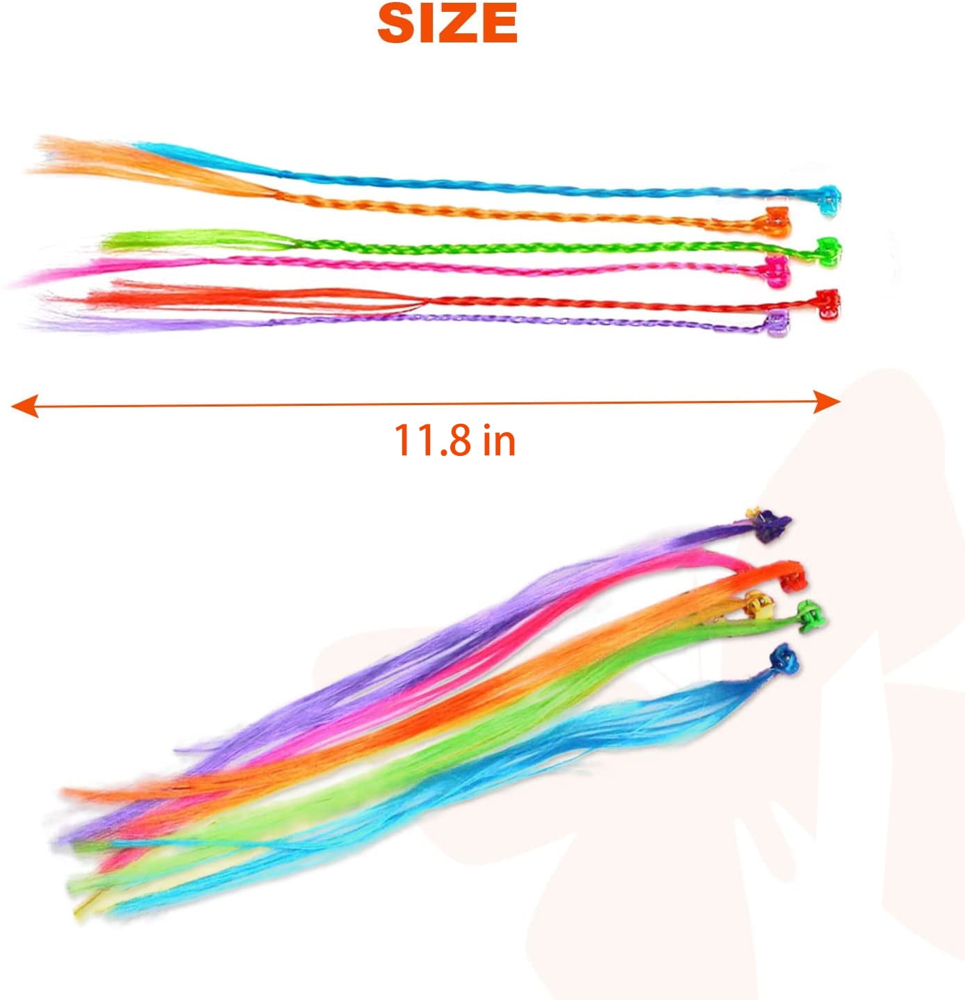 Husfou 24pcs Braided Hair Braids Kit, kids Hair Extensions Colored Straight Wigs for Girls, Shiny Neon Clip-in Hair Extensions Rainbow Hair Accessories Braiding Hair Clips for Party Favors