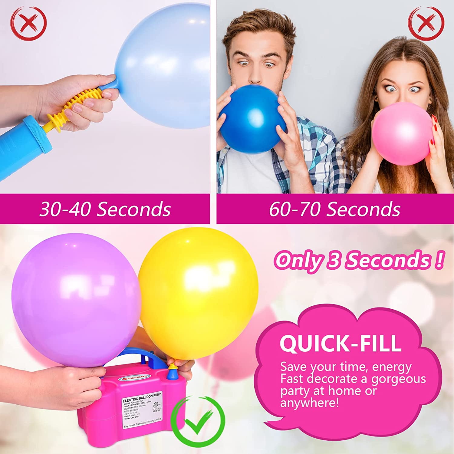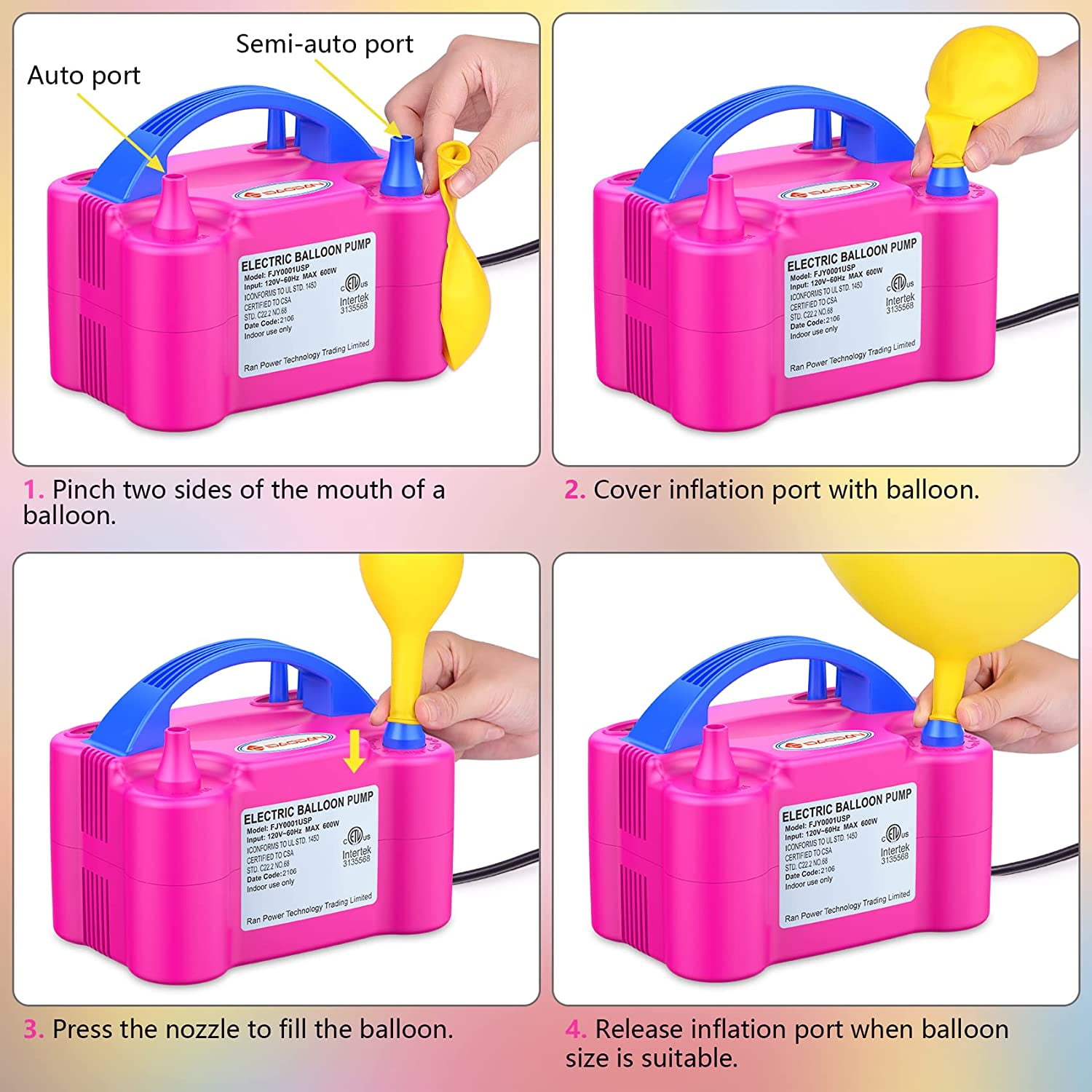 - This electric balloon pump fit to latex balloon and decorative balloon. Double pump, balloon air pump. Balloon pump has two modes: manually and automatically.