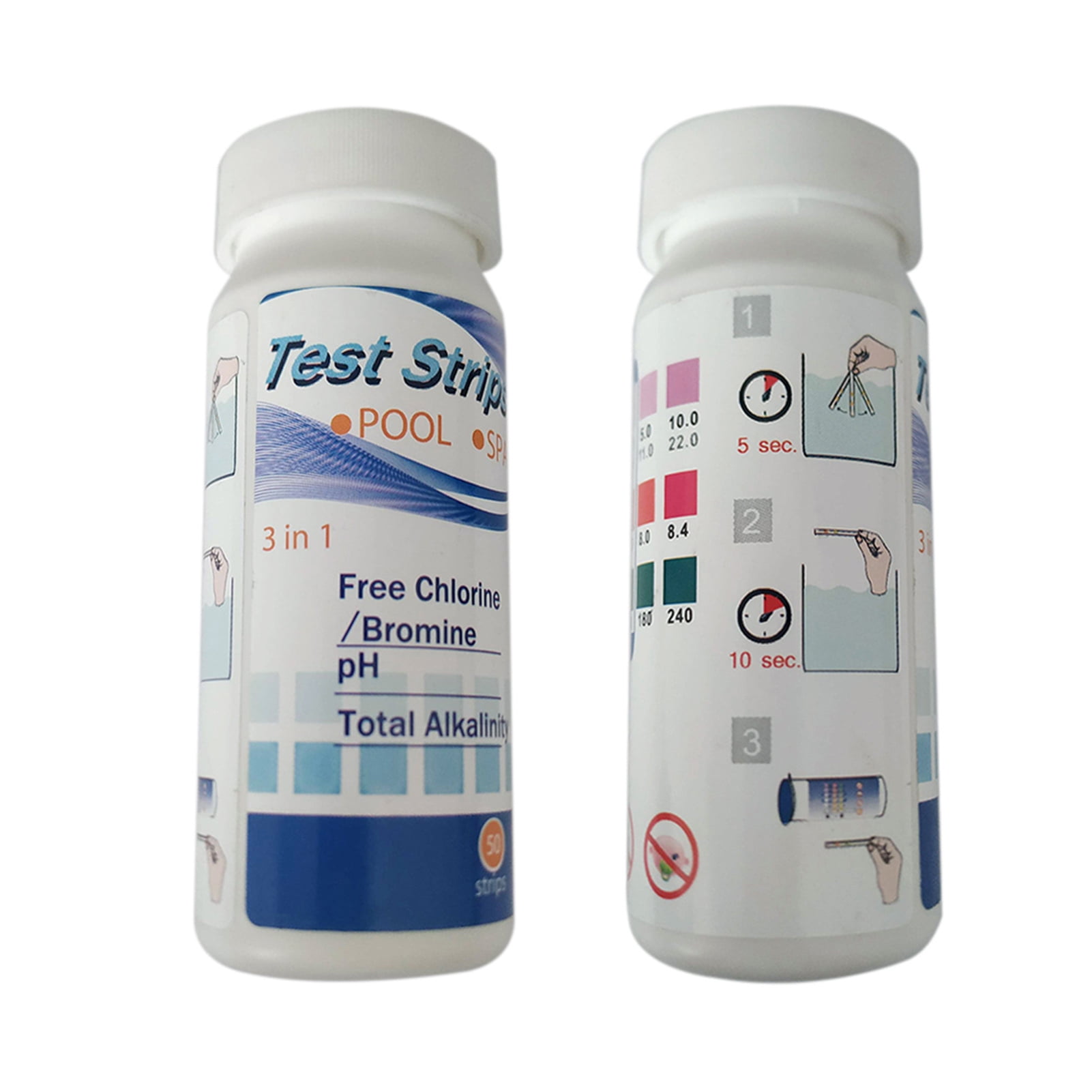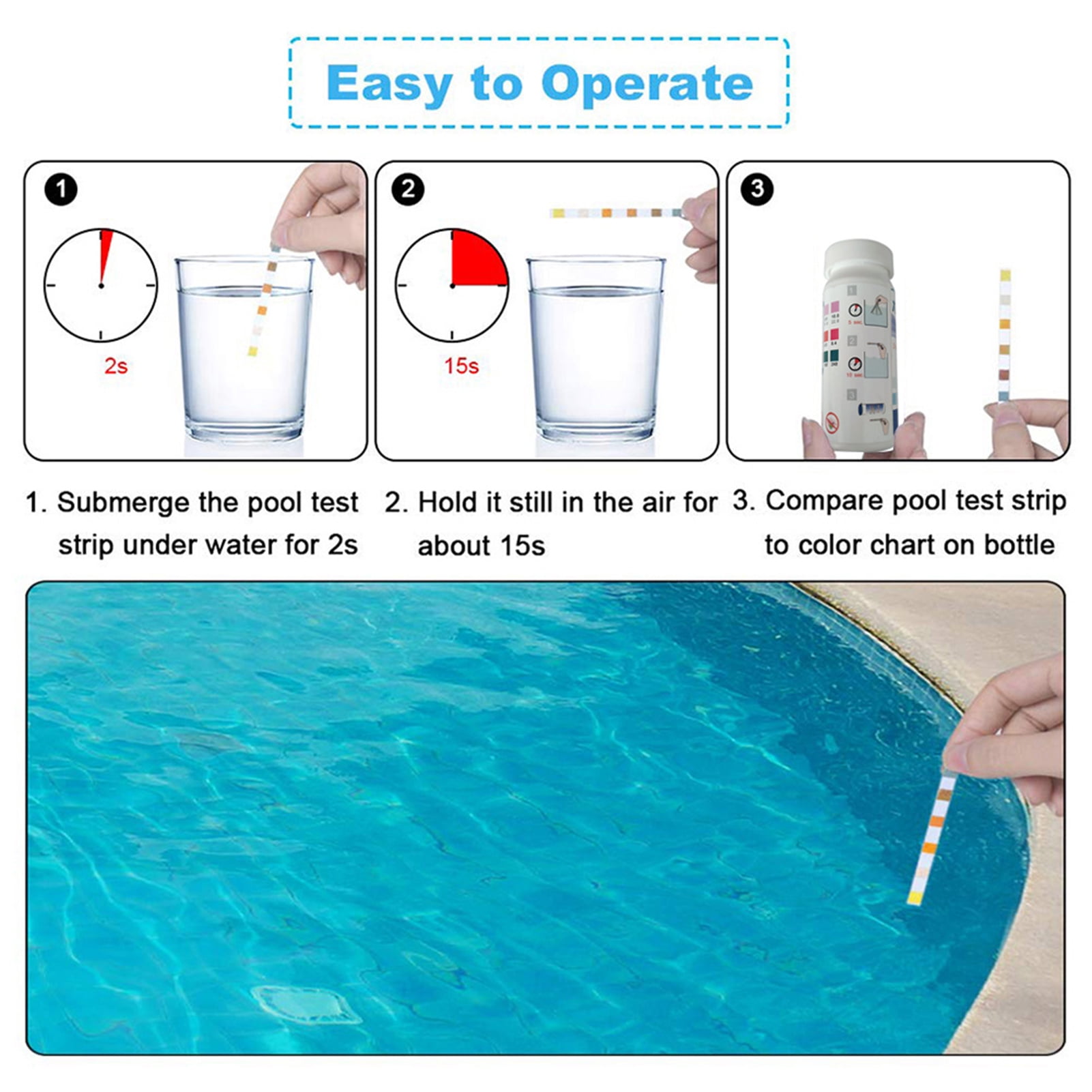 - Tests for free chlorine, bromine, pH, total alkalinity.