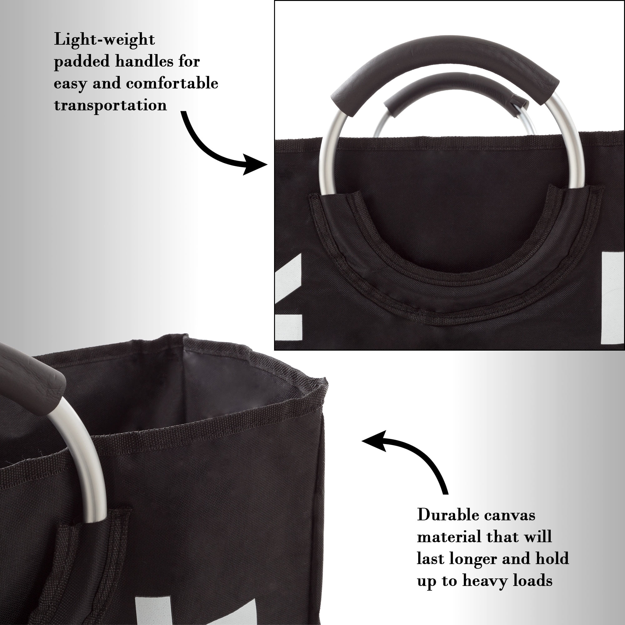 The Double Sectioned Laundry Hamper by Lavish Home is perfect for separating clothes and making laundry day more convenient than ever before. The soft yet durable fabric is foldable and can be stored conveniently to save space when not in use and the dual compartments make sorting clothing hassle-free. Also featuring sturdy aluminum tube handles, this clothing bin is easy to carry and is perfect for use in a home, in a dorm or transporting laundry to the laundromat. IMPORTANT: Avoid buying counterfeit products and transacting with unauthorized sellers.