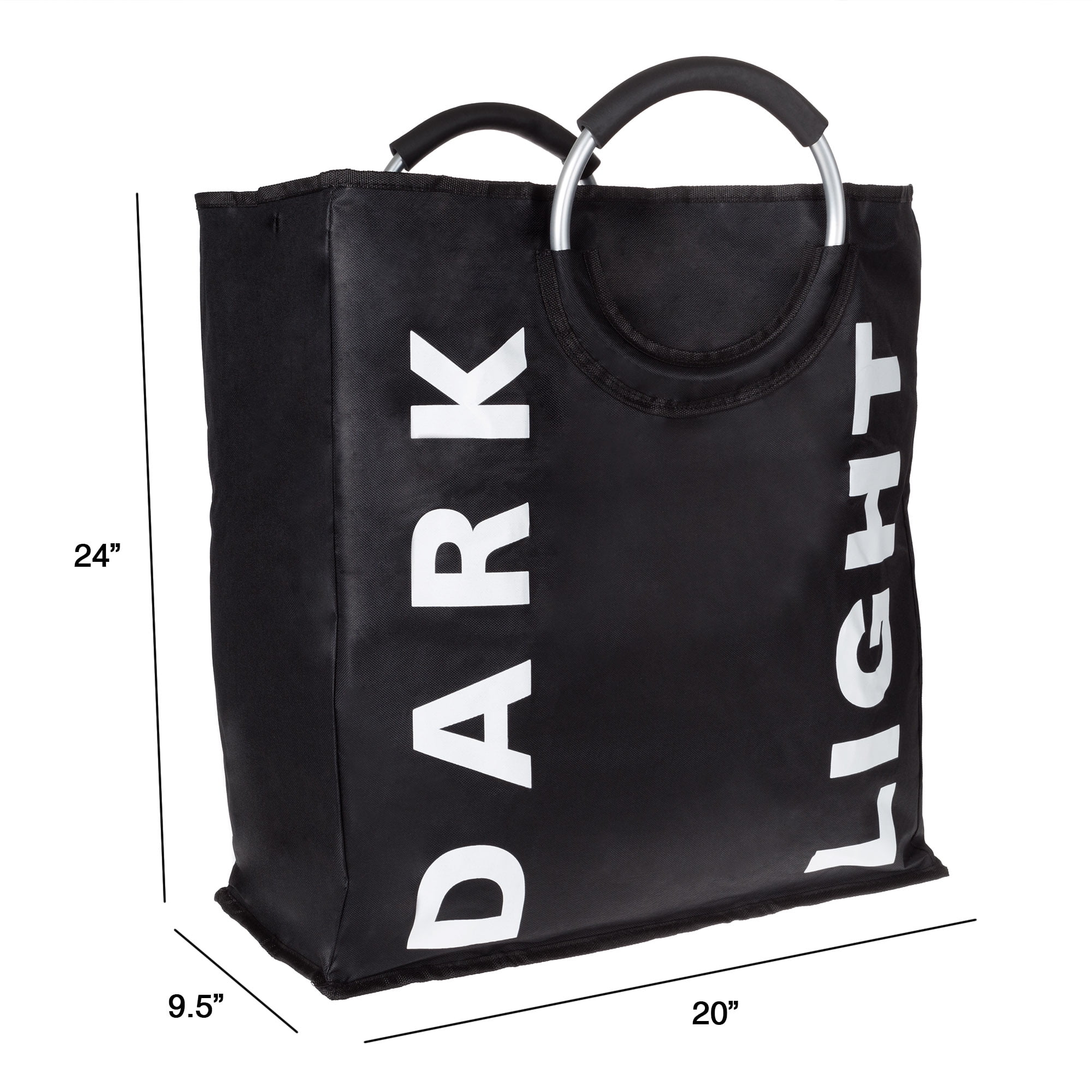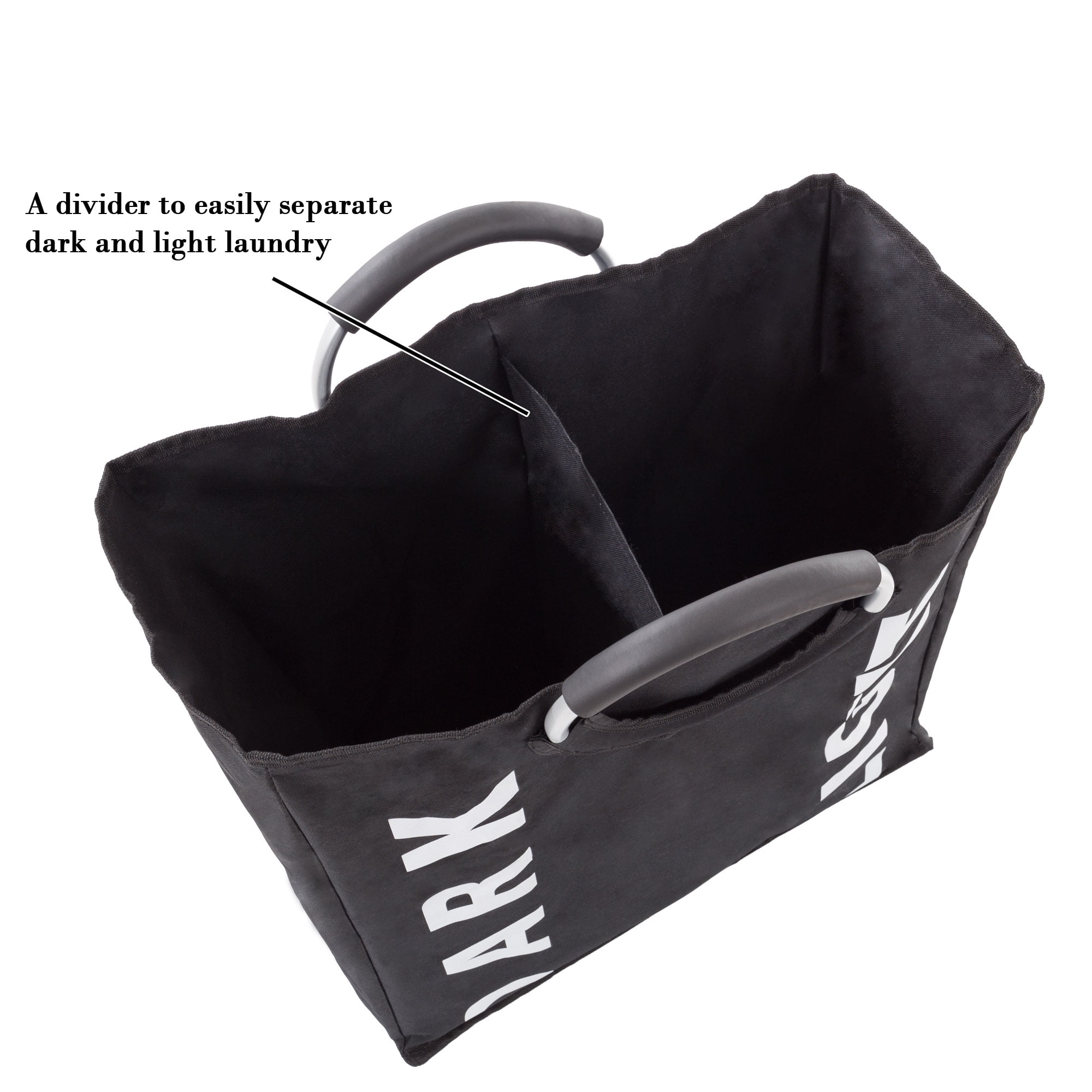 - EASILY SEPARATE AND ORGANIZE LAUNDRY: Save time by sorting your dark and light clothes before laundry day. The double compartment hamper features a divider between the two baskets which makes separating and organizing all of your laundry by color hassle free.