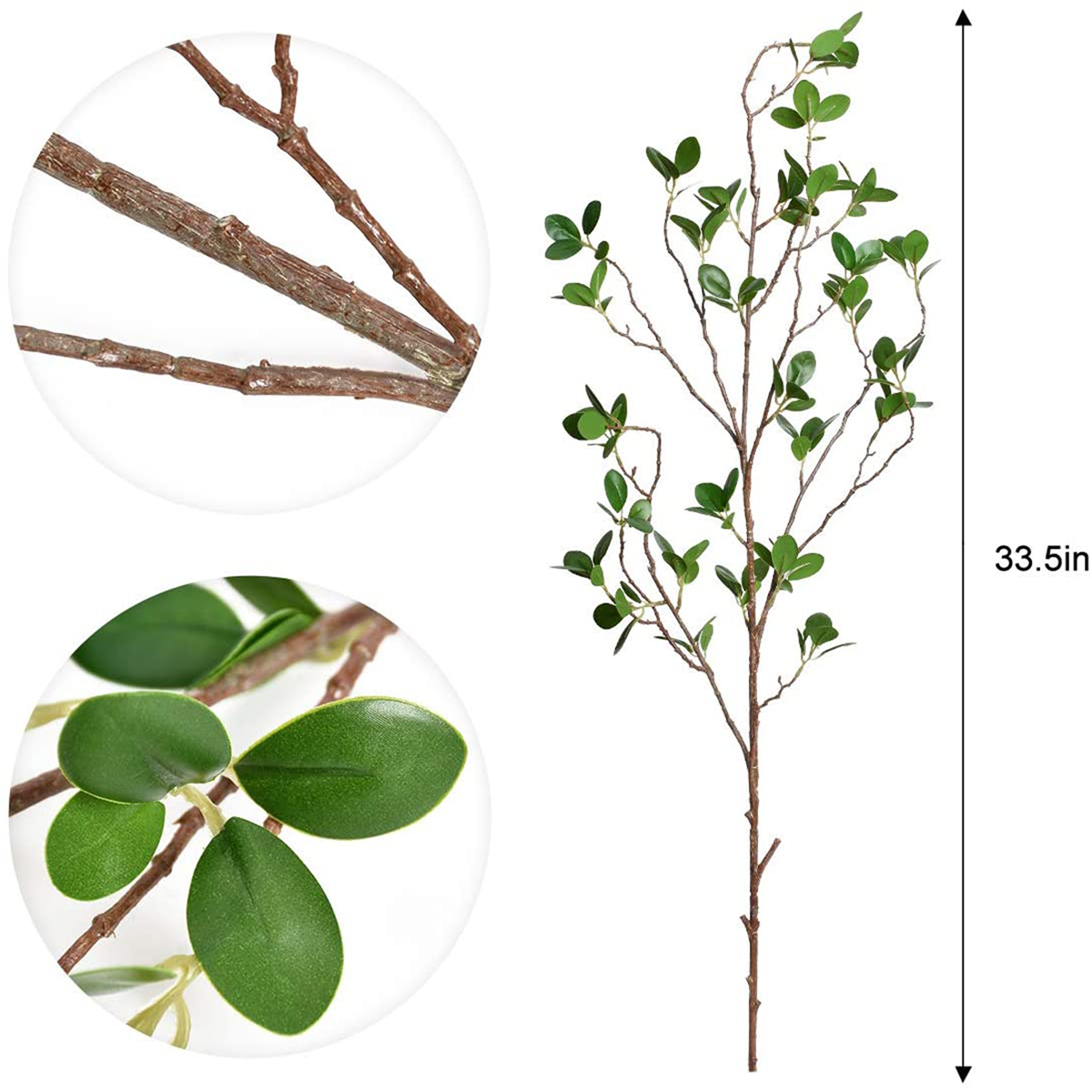 The artificial Ficus stems and leaves are made of high-quality plastic and silk. Ficus Branches Vibrant green and brown color make it vividly real. And the iron wire is wrapped in the stem, which is more flexible for different vases. The total Ficus height of each faux branch is about 39.50 inches. The opening diameter of the pot, bottle, vase, or jar needs to be around 2-inch in width to accommodate all 2 branches.