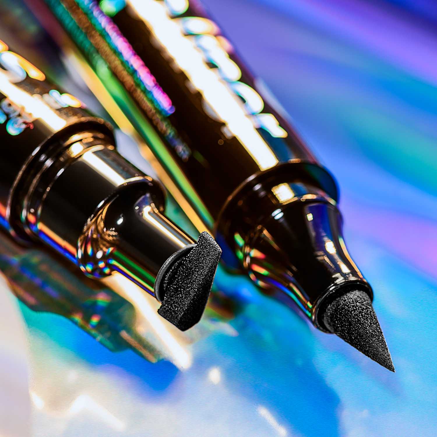 Meet your fierce new best friend with Lottie London’s game-changing, time-saving double-ended stamp and liner pen. Featuring a wing-shaped stamp for perfectly even flicks in seconds and a felt-tip liner to define your eyes. This inky black duo is your new must-have hero!