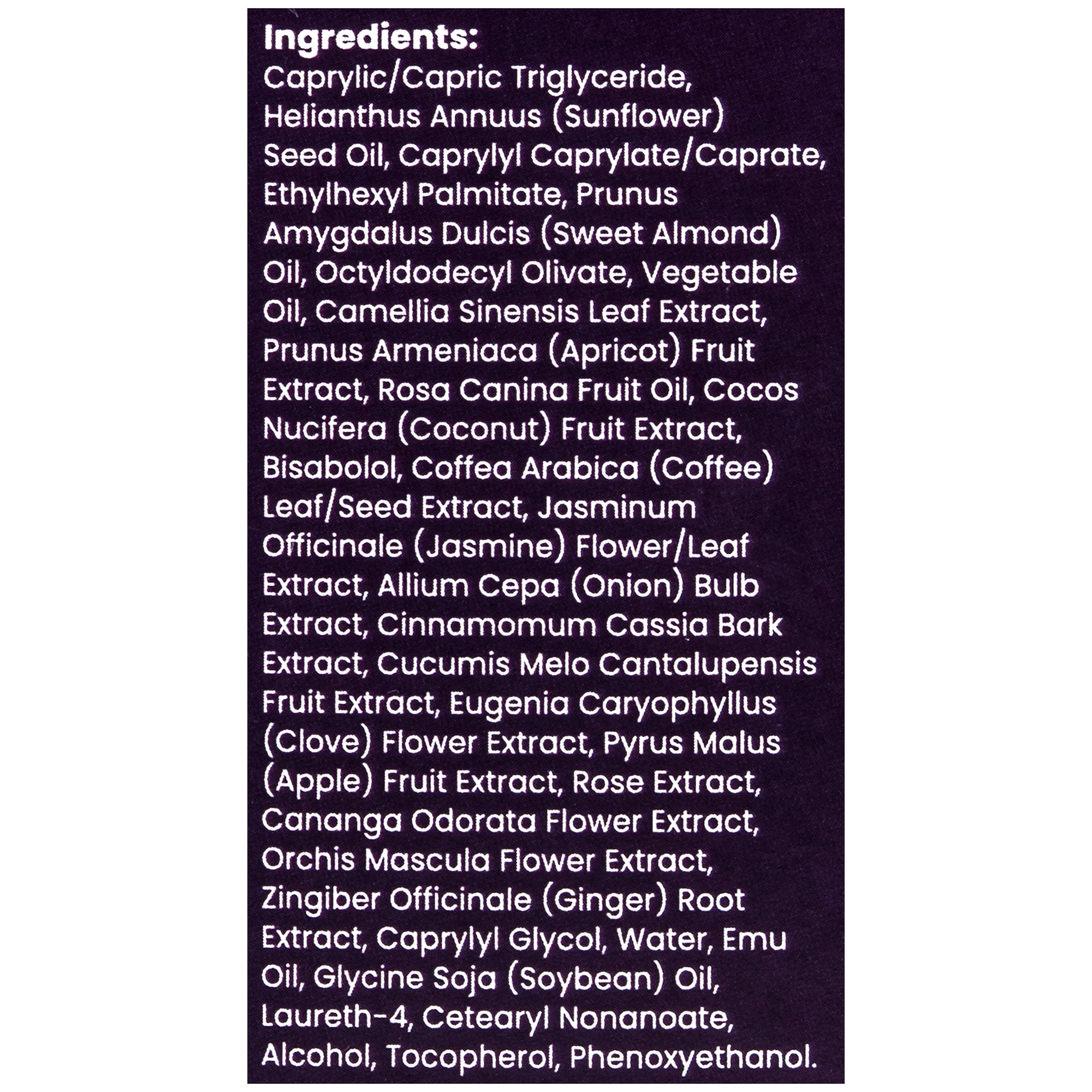 - COMPLEX BLEND OF OILS including sweet almond, rose hip and sunflower oils to nourish and moisturize