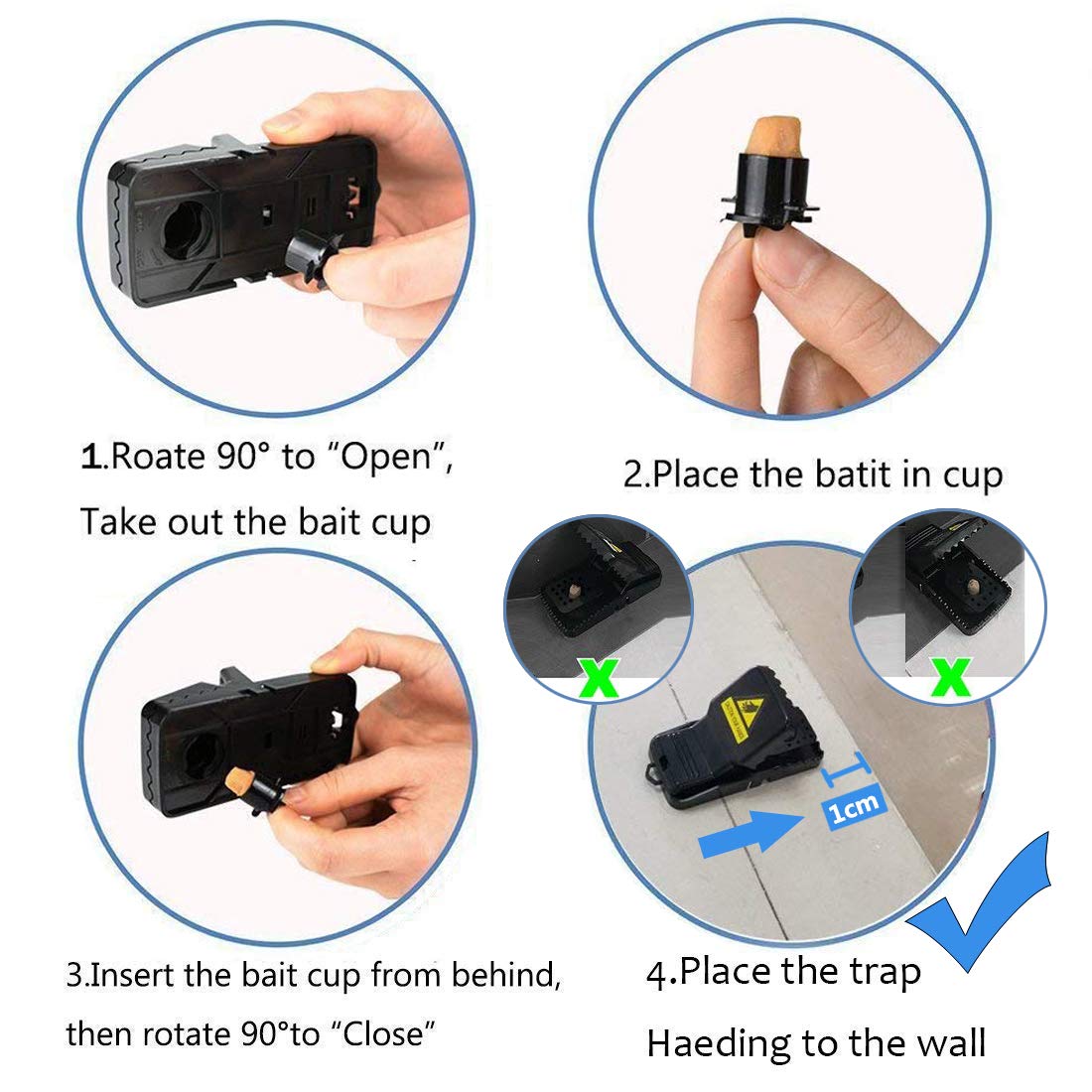 - EASY TO USE AND SET – Just put a bait in the cup, and put it back to the mouse trap, keep the trap clamp open, you can place the mouse traps both outdoor and indoor use.