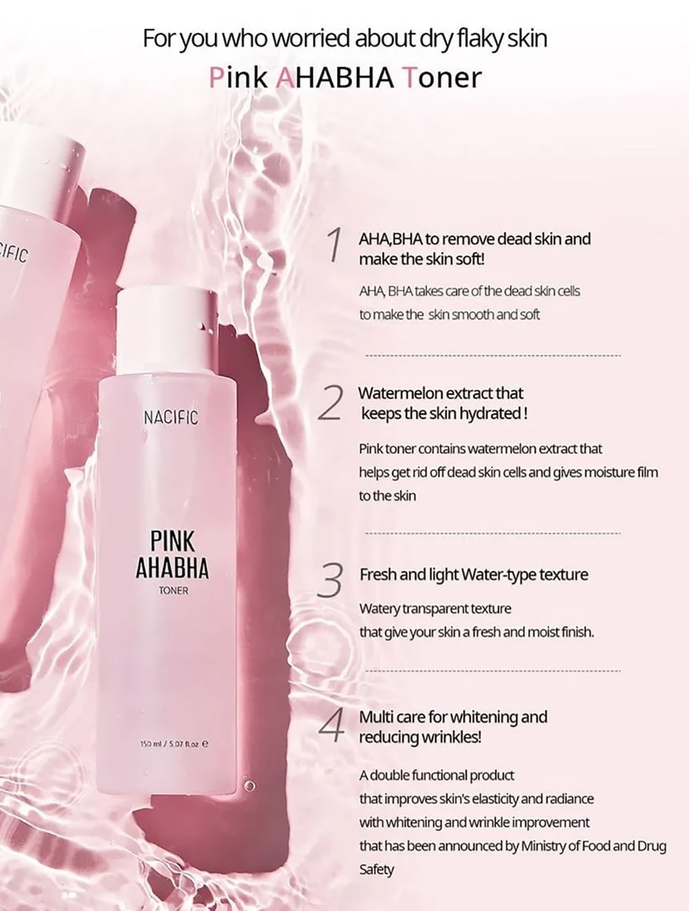 - A skin-refining toner contains AHA, BHA that gently remove dead skin cells.