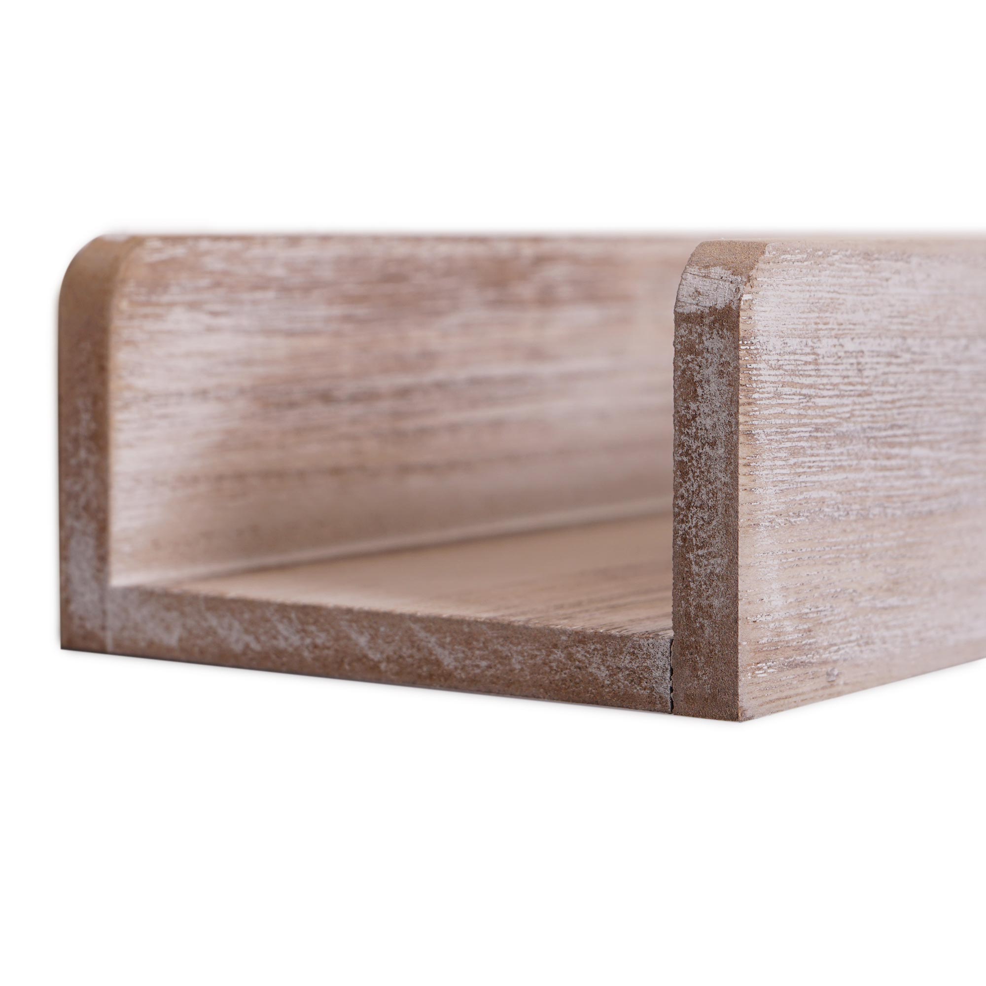 - 3-PIECE FLOATING SHELF SET – Clear some clutter and give yours wall an update with this whitewashed wooden ledge wall mount shelf set in neutral grey.
