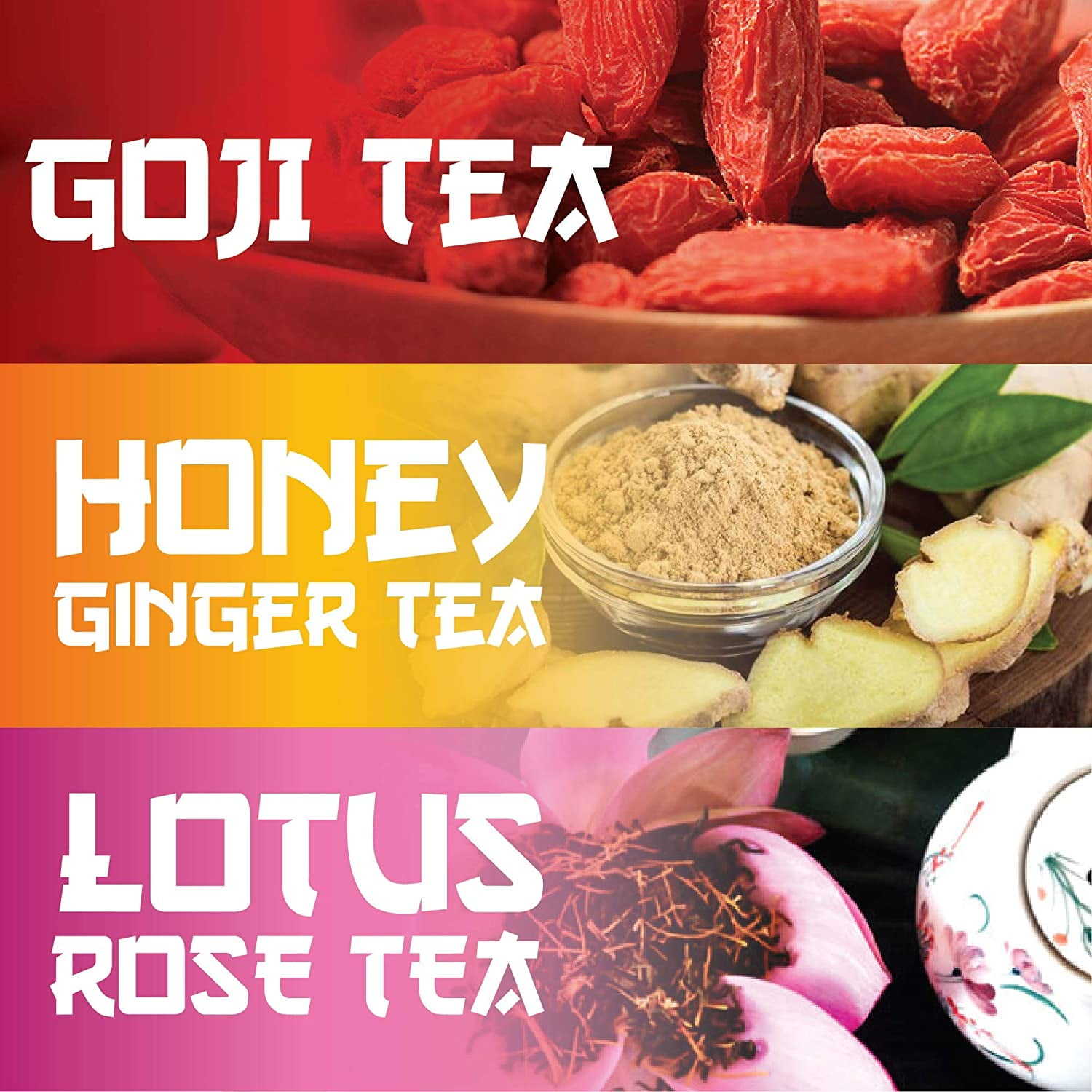 NineChef Bundle – Gold Kili All Natural Instant Ginger Caffeine Free Herbal Tea Drink Sampler Pack (20 Sachets) – 12.6 Oz + 1 NineChef Brand Long Handle Spoon