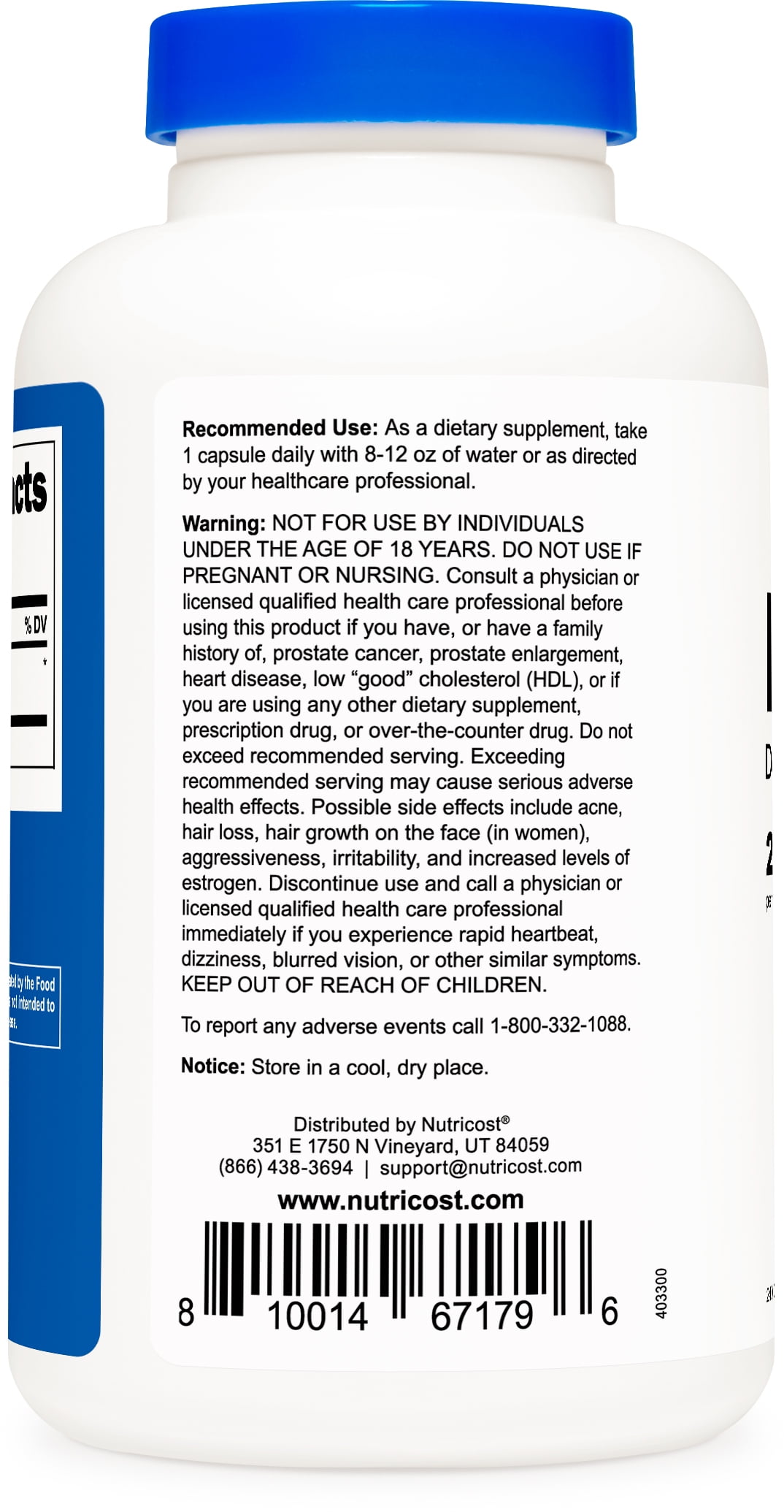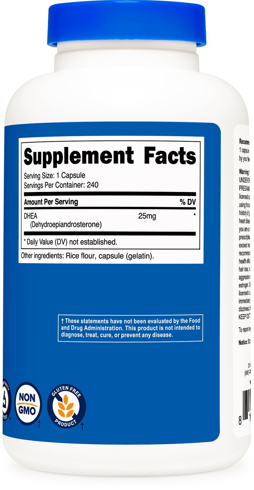 Nutricost DHEA includes 240 capsules with 25g of DHEA (Dehydroepiandrosterone) per capsule. This supplement is gluten free, non-GMO and third party tested. Nutricost, located and headquartered in the USA, only uses the best ingredients to ensure maximum quality and to help you feel your best! By keeping our supplement recipes simple and clean, you get the best experience possible with Nutricost. Our supplements are manufactured in a GMP-compliant and FDA-registered facility; and each batch of every product is tested by independent, ISO-accredited laboratories. These statements have not been evaluated by the Food and Drug Administration. This product is not intended to diagnose, treat, cure, or prevent any disease.