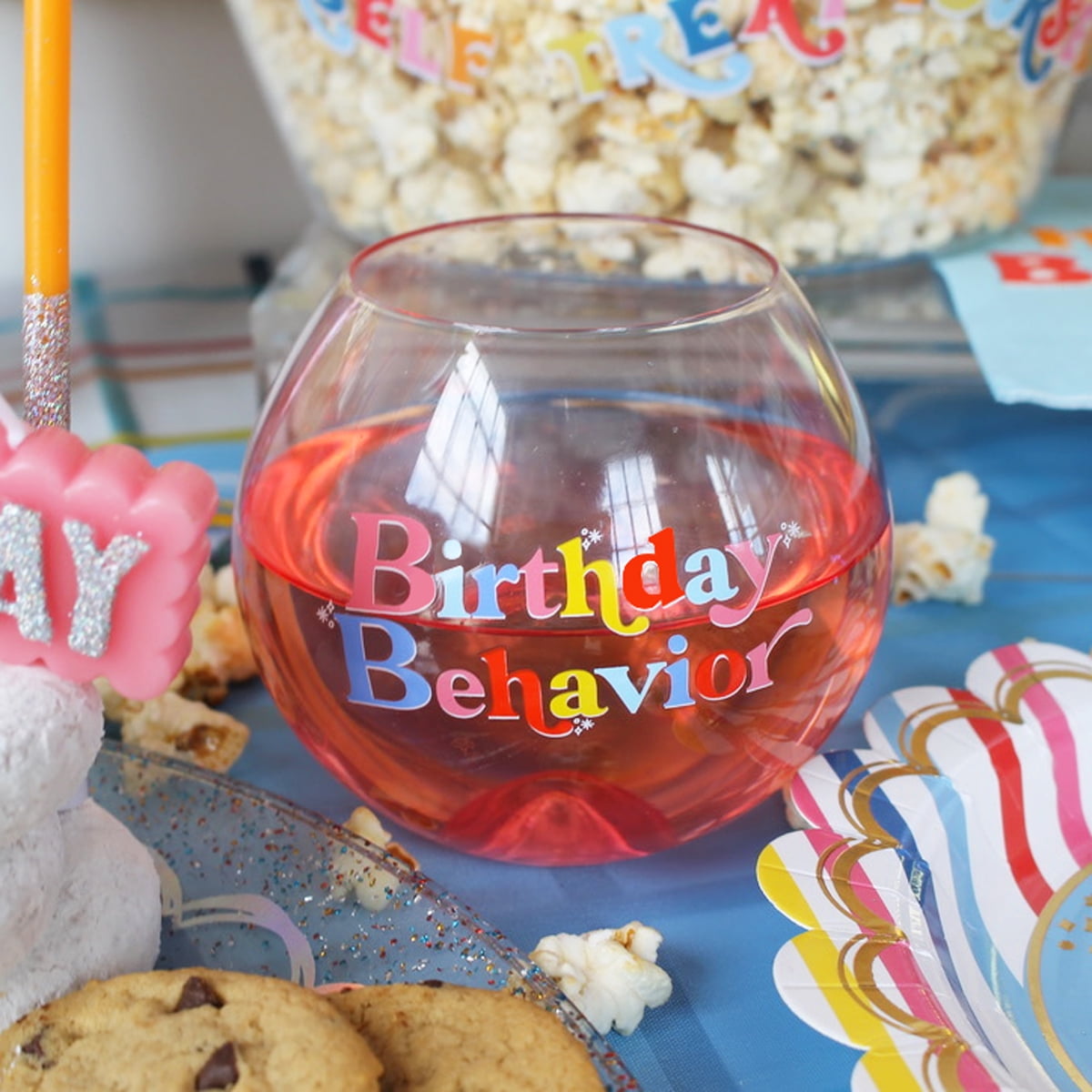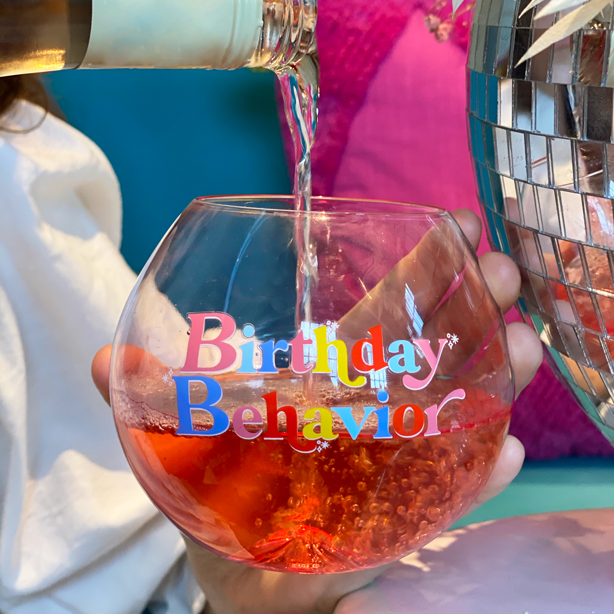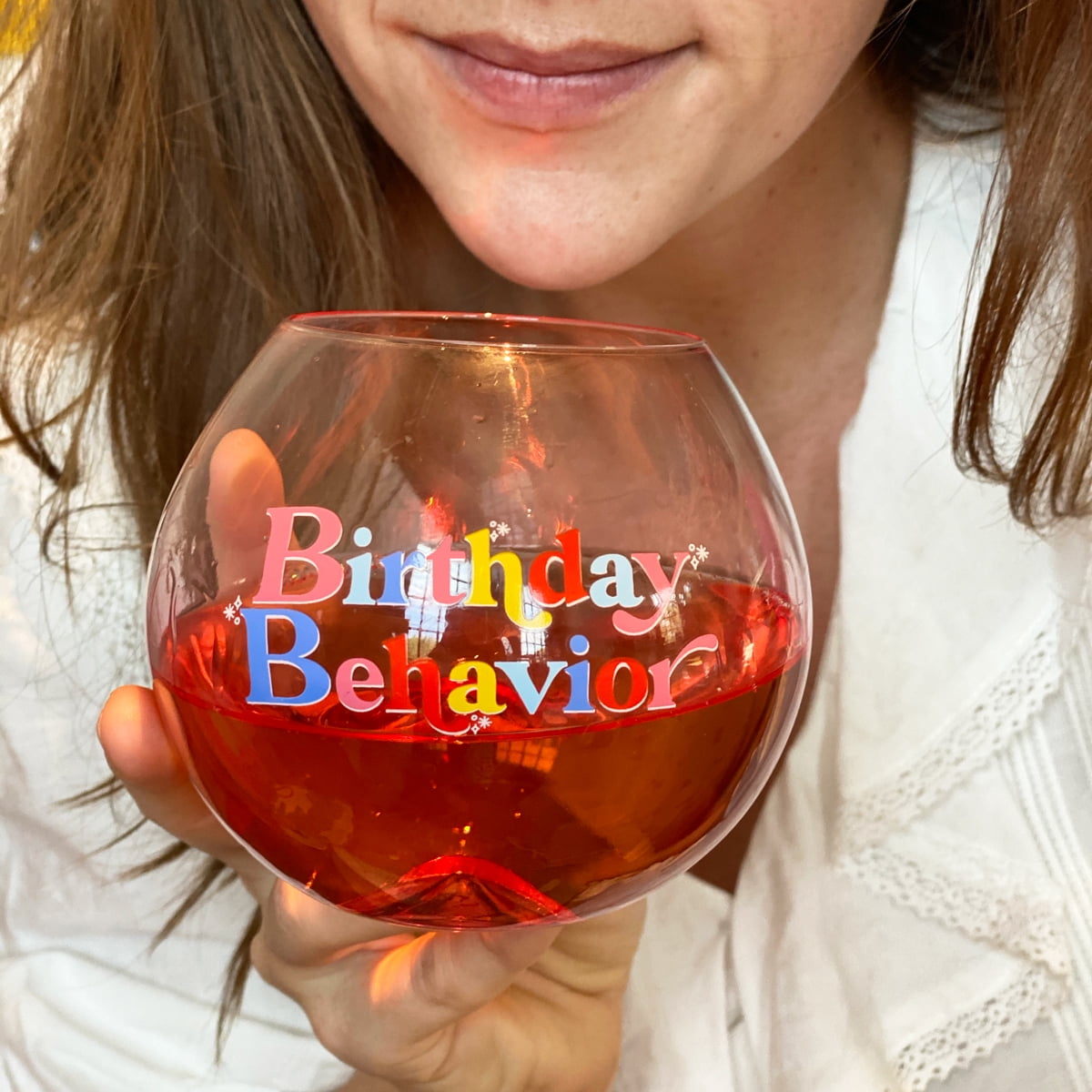 Cheers! Get into the birthday spirit with this fun Birthday Behavior luxe wine glass we designed with you (and your BFF) in mind. Perfect to gift for someone’s special day or keep for yourself too is this pink tinted wine glass. Just add cake and you’re birthday ready!