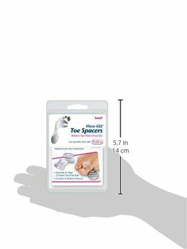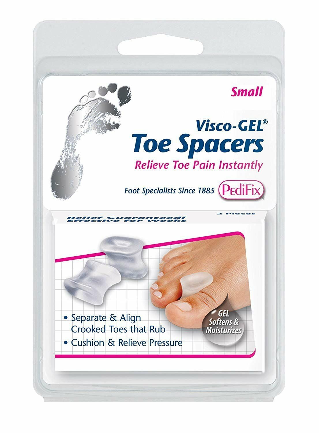 Visco-GEL? Toe Spacers comfortably separate the big and second toe to help maintain proper alignment and relieve pressure on the bunion joint. These soft positioners are molded from a unique Gel which absorbs pressure and friction between toes while releasing vitamin-enriched mineral oil to soothe and moisturize skin. Make shoes comfortable. Washable and reusable for months.Features include: â¢Straighten & align problem toesâ¢Relieve pressure on bunion jointâ¢Separate & cushion toes that rub, absorb frictionâ¢Washable, reusable, effective for monthsâ¢Proprietary Visco-Gel? delivers mineral oil to skin surace to soothe, soften, moisturize