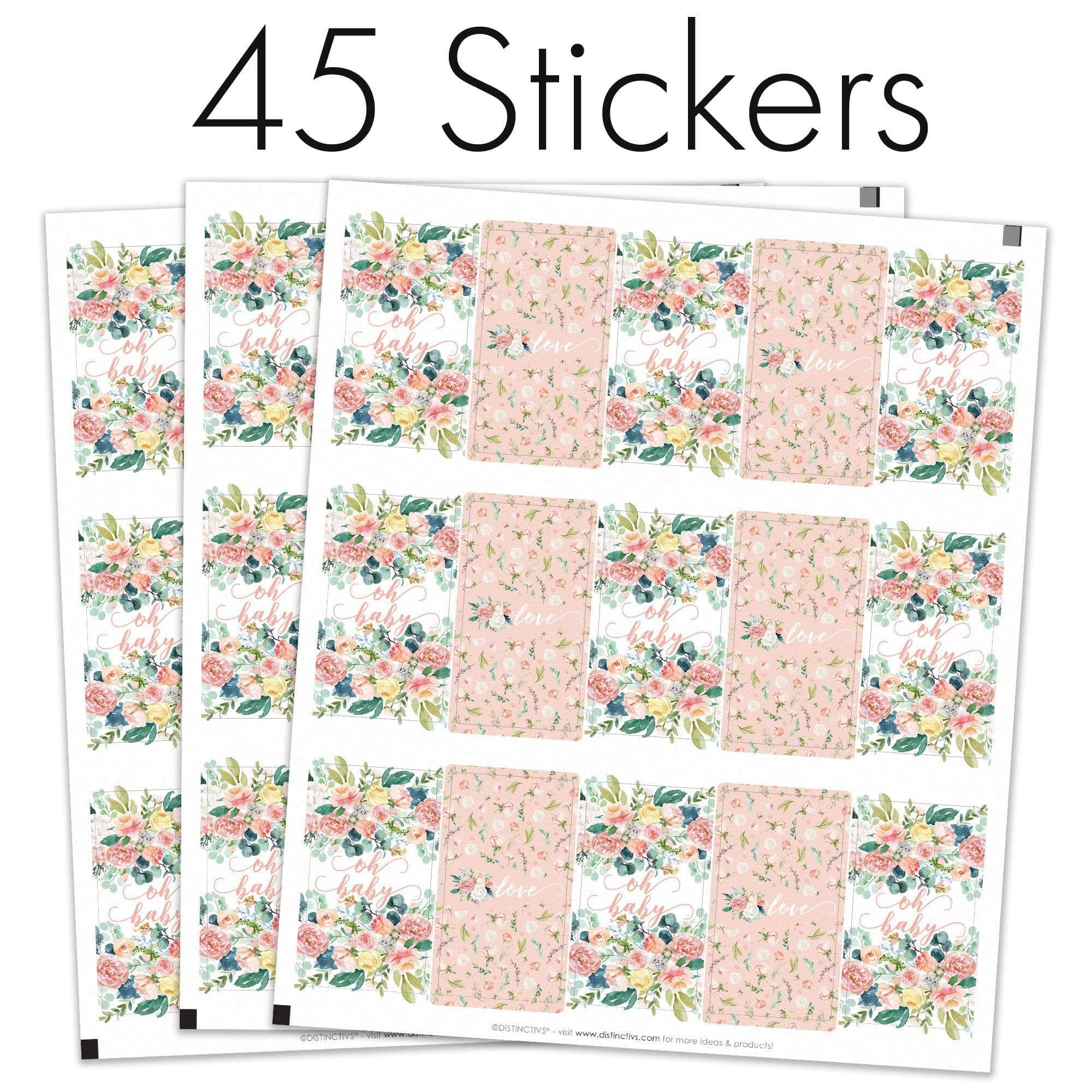 Pink Floral Baby Shower Favor Mini Candy Bar Wrapper Stickers- Party Favor Labels – 45 Count – Distinctivs