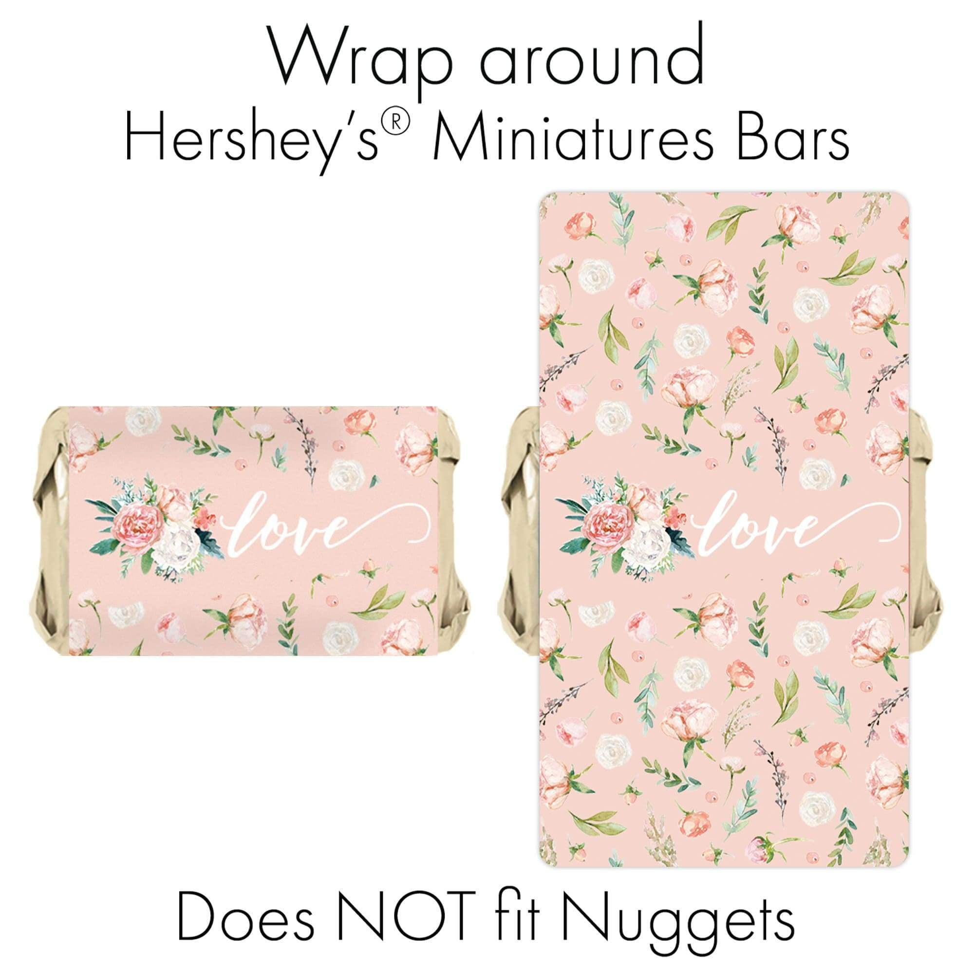 - CANDY NOT INCLUDED. Stickers wrap exactly around Hershey’s Miniatures candy bars to make pink floral baby shower favors; 2.5" x 1.56" each.