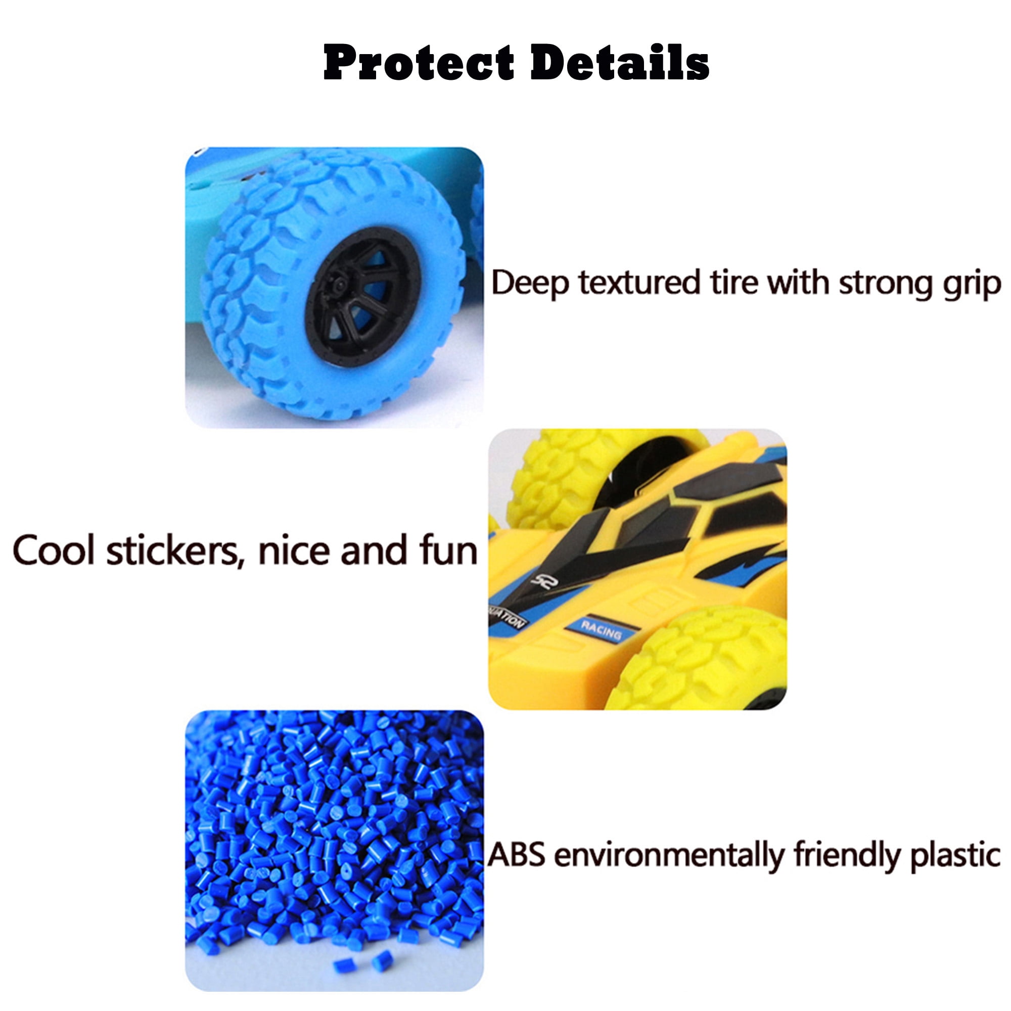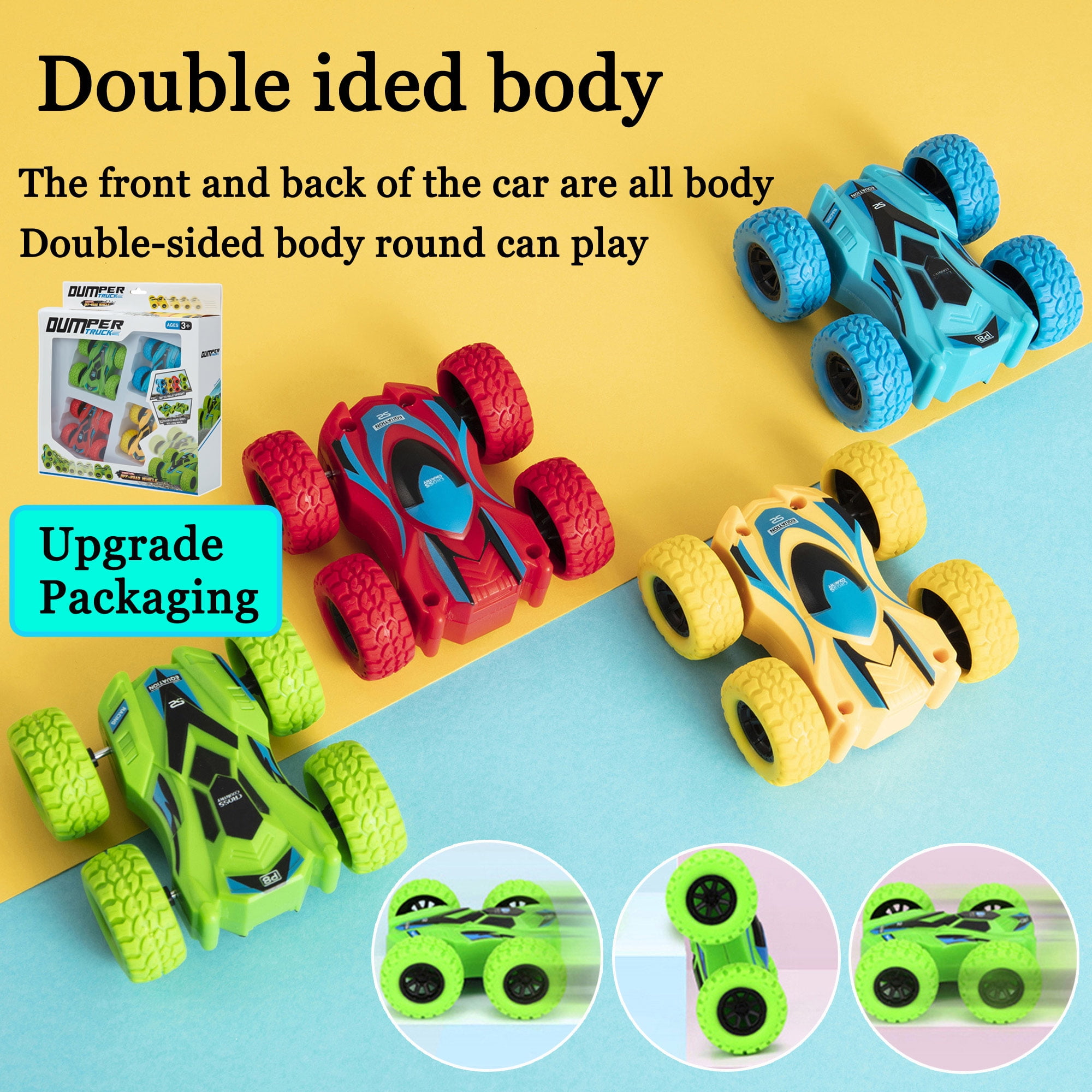 Set of 4 Friction Powered Car Toys Set, Double-sided Stunt Flip Inertia Car, Push and Go Toy Cars for Toddlers, Powered Pull Back Toys Vehicle 360 Rotation and Flips Off Road Novelty Car Toys Gift