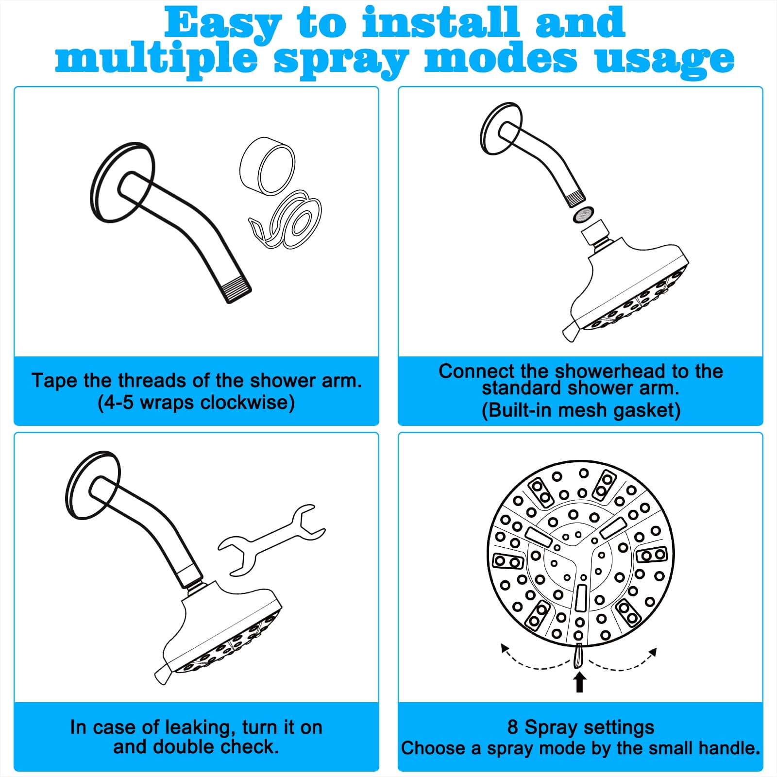 - Variety of Spray Settings. High-performance shower head offers 8 spray settings to deliver an amazing shower: Full Body, Full Body + Massage, Massage, Massage + Misty, Misty, Full Body + Sweeping Spray, Sweeping Spray, Dripping
