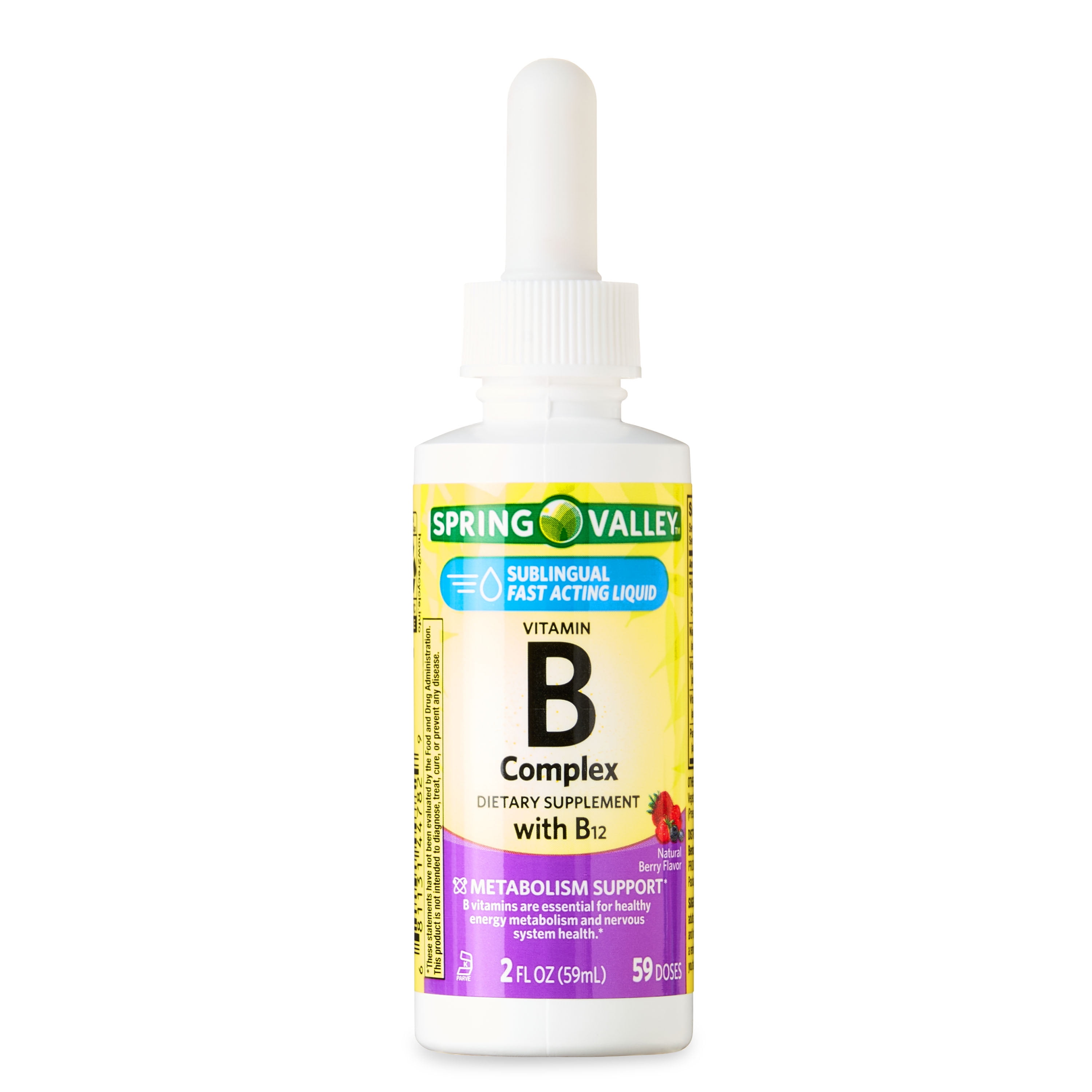 Take charge of your metabolism health with Spring Valley Sublingual Fast Acting Liquid Vitamin B Complex Dietary Supplement with B12. Spring Valley Fast Acting Liquid B Complex offers a distinct advantage over conventional supplements. It comes in an easy-to-use liquid form, which is perfect for those who have difficulty swallowing tablets and capsules. The B-Complex is made up of several B vitamins essential to life. Each vitamin works with your body to promote nervous system health and support energy metabolism throughout your system.* This liquid provides an excellent source of several B-Complex vitamins to help safeguard a sufficient daily intake. The B-Complex is essential for the maintenance of healthy nervous tissue.* Take charge of your metabolism health with Spring Valley Sublingual Fast Acting Liquid Vitamin B Complex Dietary Supplement with B12.