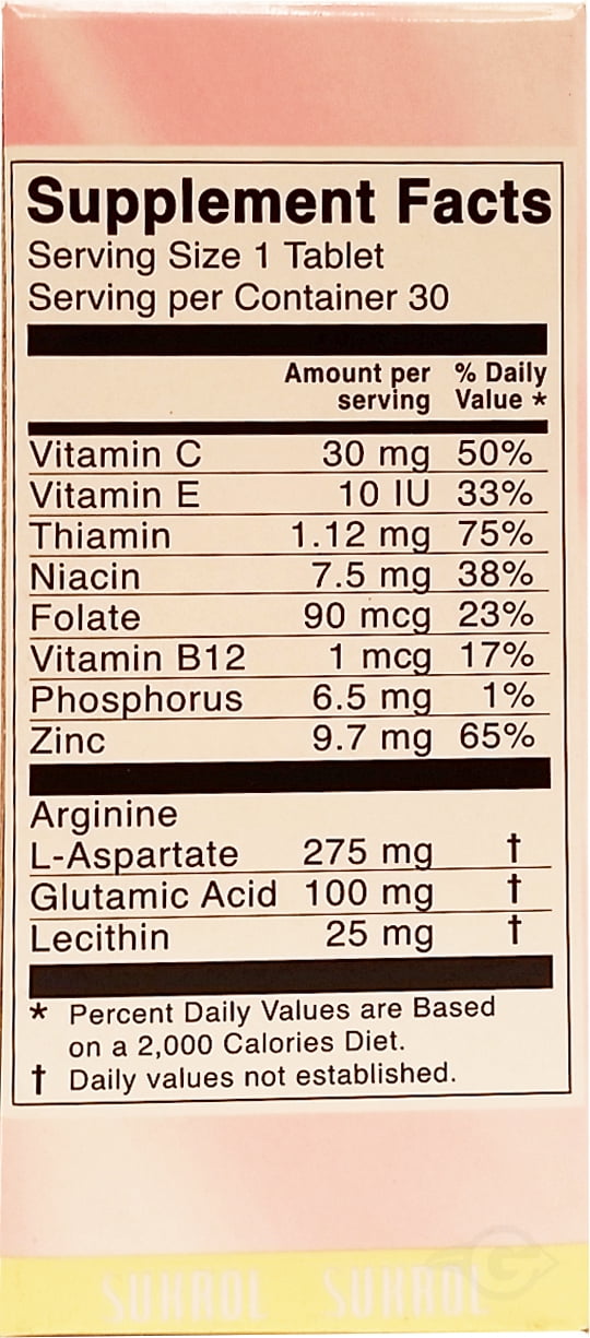 Sukrol Vigor Woman dietary supplements are designed specifically to meet the special nutritional needs of females. This supplement contains vitamin C and zinc oxide, two substances that are essential in immune function. Vitamin C is a potent antioxidant that helps to neutralize free radicals and protect against illness. Zinc oxide helps to promote rapid healing and encourage collagen production, which in turn helps to minimize wrinkles and sagging skin. Each caplet also contains vitamin E an important vitamin that plays an important role in skin cell regeneration, as well as folic acid and soy that help balance out hormonal fluctuations and minimize hot flashes. One of the most essential ingredients in this healthy supplement is glutamic acid. Glutamic acid is an amino acid that aids in healthy metabolism function and helps to increase energy. For optimal results, this supplement should be taken 1-2 times daily. It is best to take Sukrol Vigor Woman dietary supplements with a full glass of water and a small amount of food to ensure proper absorption.