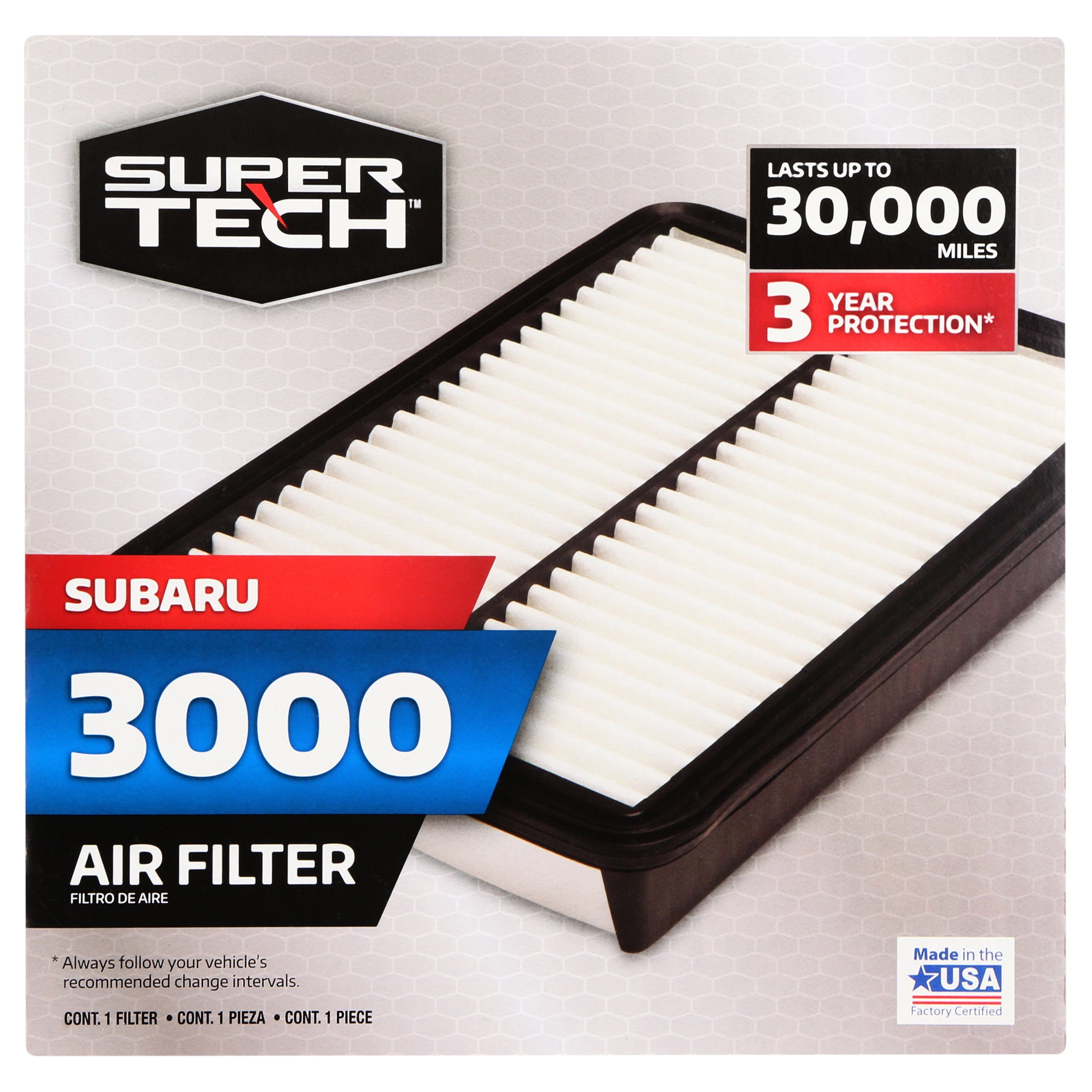 - Filters air through your engine for up to 3 years or 30,000 miles