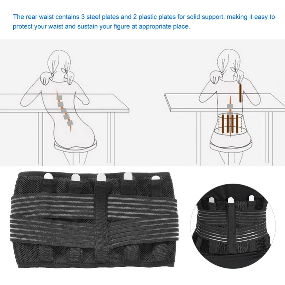 The rear waist contains 3 steel plates and 2 plastic plates for solid support, making it easy to protect your waist and sustain your figure at appropriate place. It can relieve the lumbar pain caused by occupational disease, lumbar disc protrusion, sports exercise, longtime driving, etc.