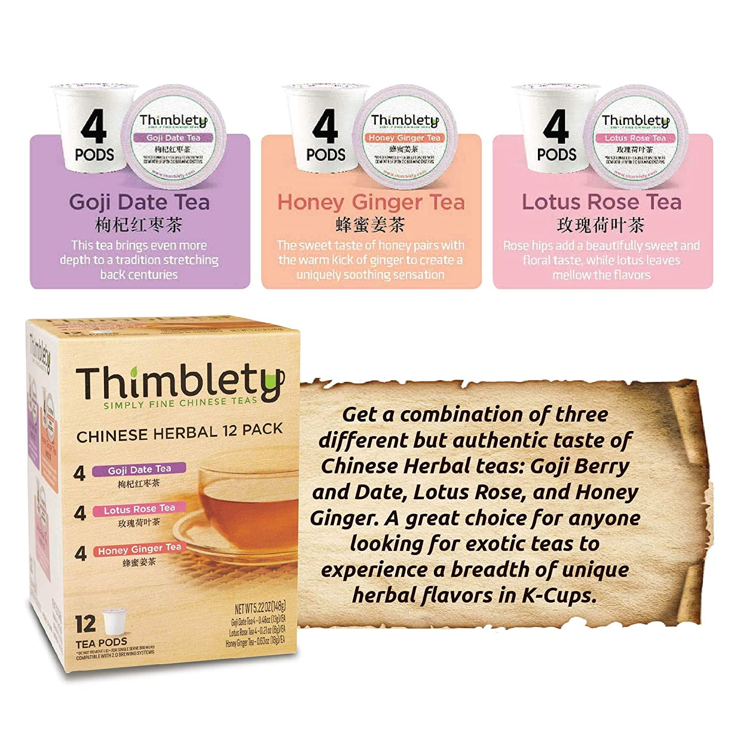 Thimblety Chinese Herbal Tea Capsules Variety Pack for K Cup Brewers, 12 Pods: