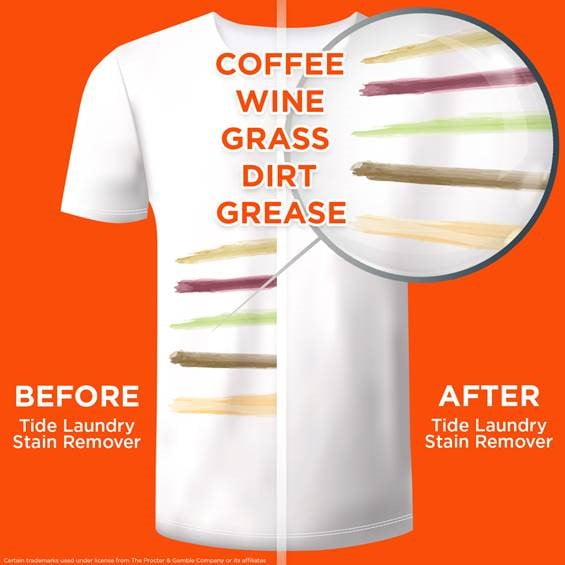 - Not Just for Laundry Stains: Tide Rescue removes tough stains on clothing, upholstery, carpets, pet bedding, car seats, and more caused by dirt, food, pets, wine, grass, grease, blood, coffee, etc.