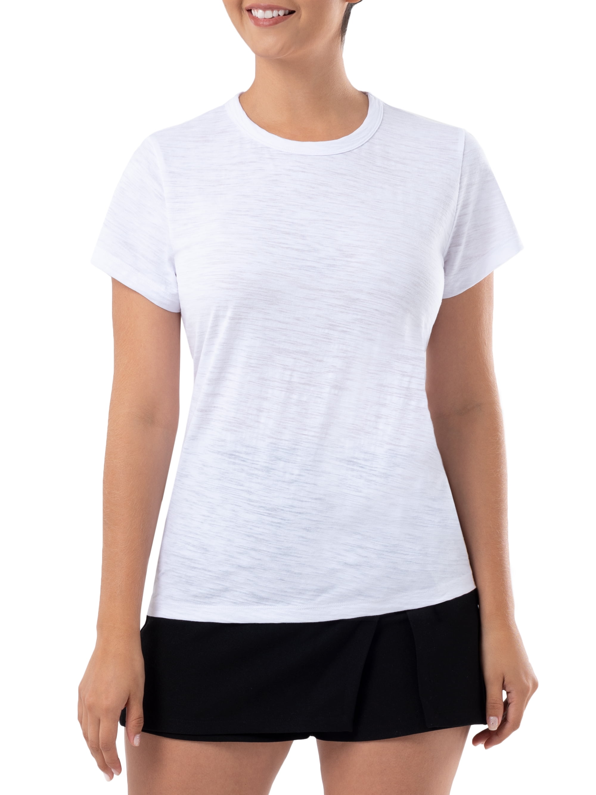 Make the best out of your basics with this Time and Tru shirt set! This set comes with a V-Neck T-shirt, a crewneck T-shirt and a tank top. Crafted for all-day comfort with a breezy slub texture, these women’s tops feature a relaxed and comfortable fit. Perfect for laid-back days, pair this T-shirt and tank top set with your favorite jeans or shorts for a fun, casual look or mix and match with a light jacket and accessories to dress them up for a night out.