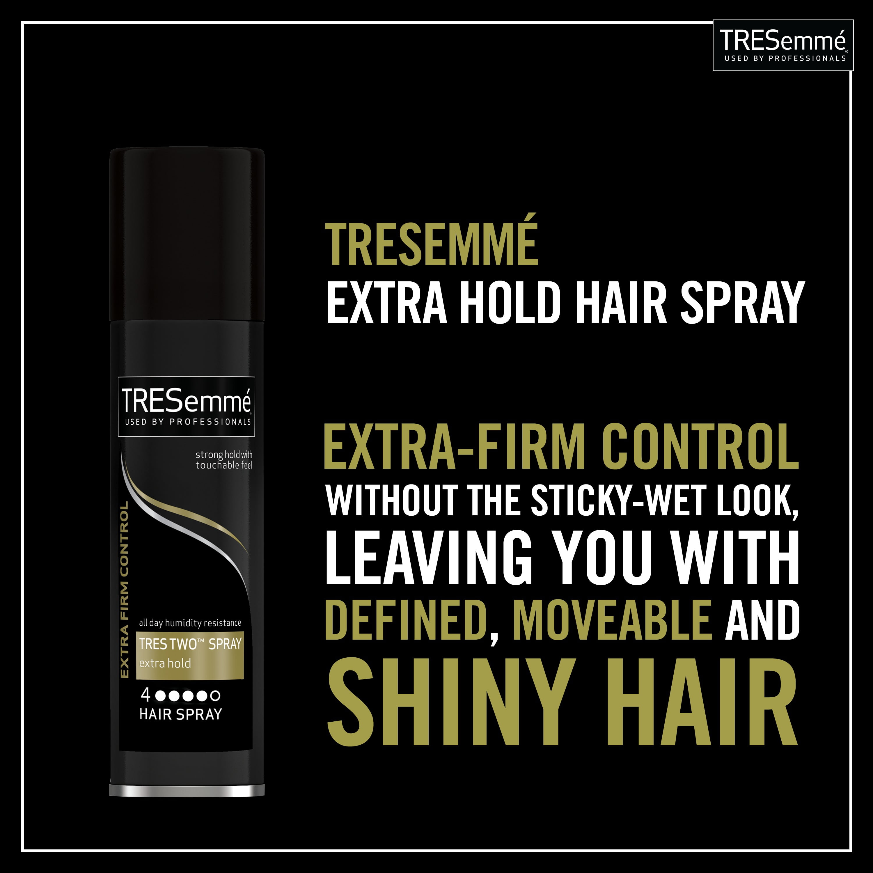 - TRESemmé TRES Two Extra Hold Hair Spray keeps your hairstyle in place and helps with frizz control.