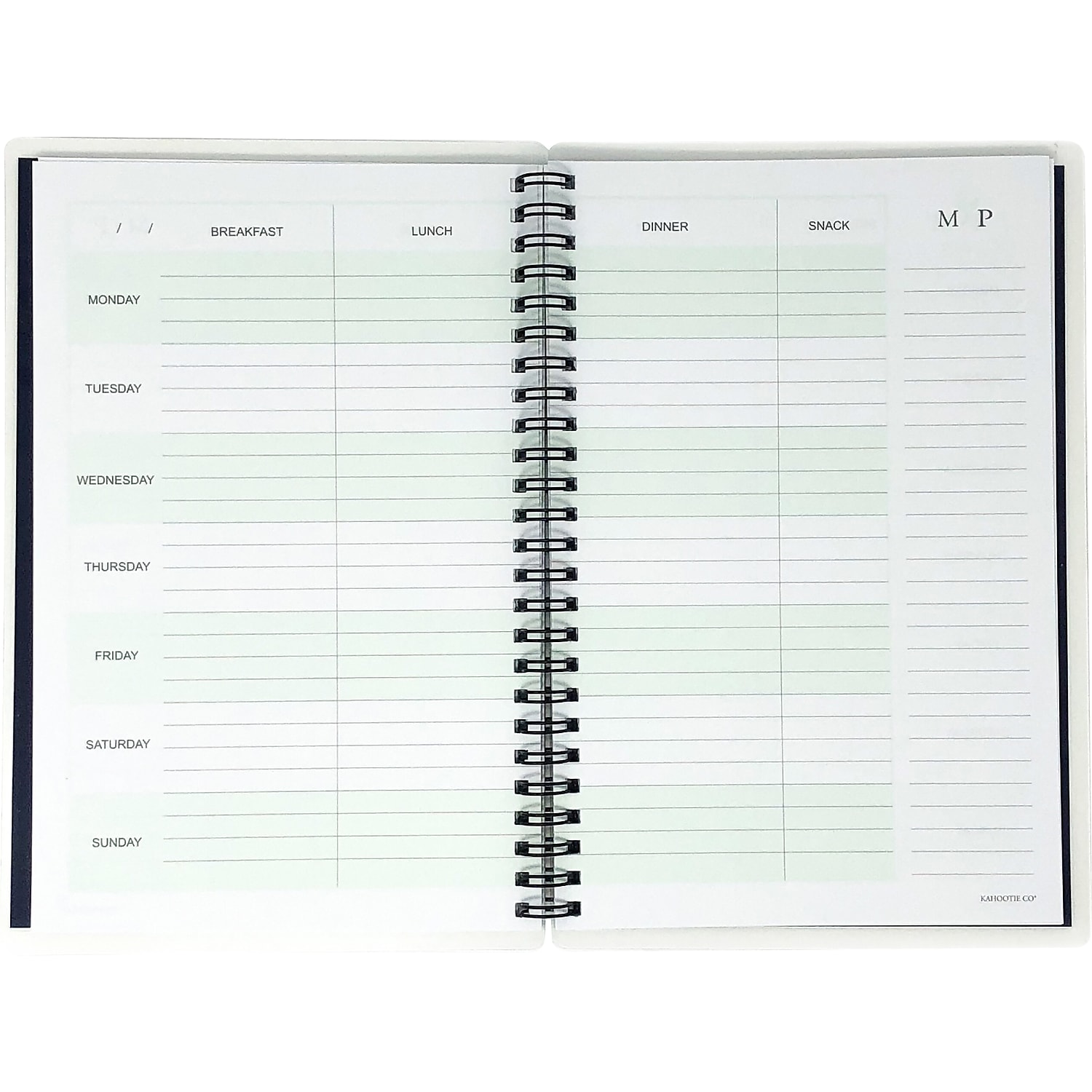Kahootie Co empowers others to stay organized through its variety of planners, notepads, planning journals, and office accessories. We are passionate about creating simple solutions that make life easier. Save time and money and always know whats for dinner with this meal planner. A simple solution for anyone looking to eat healthier, reduce last minute trips to the grocery store and stay more organized during the week by planning meals in advance. Includes 1 year of undated weekly meal planning pages. Two pages-per-week layout provides a visual snapshot of breakfast, lunch, dinner, and snack plan for each day of the week. Portable 6"" x 9"" in size. Reduce stress by planning meals ahead of time. Save money by planning to making use of leftovers for next day meals and eating at home. Achieve health goals by preparing healthy meal options in advance. Reference previous weekly meals for inspiration. Durable spiral bound laminated cover.