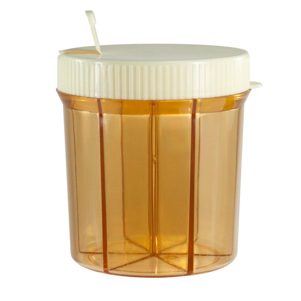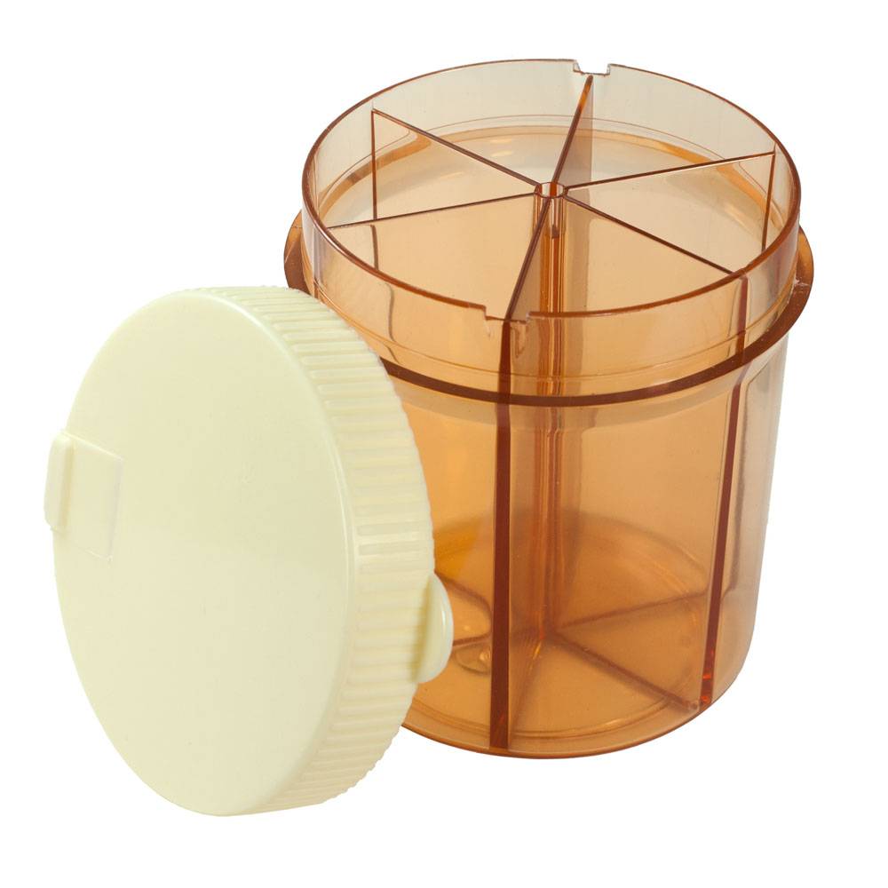 This six-compartment vitamin organizer will help you store all your vitamins, medications, and other pills. Get rid of clutter by combining several pill bottles into one convenient container. With an easy-turn lid, you can have quick access to all your vitamins and pills. Simply turn the lid, open the latch, and pour out the desired pill. The pill dispenser also comes with adhesive labels so you can keep your medications neatly organized. Make your medication management easy with the vitalizer six section vitamin dispenser!