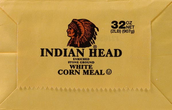 - Enriched. Family owned and operated since 1913. Indian Head enriched stone ground white corn meal is ground – slowly – on old fashioned stone buhrs, from whole kernels of plump white corn. It is never overheated. The heart or germ of the corn, so rich and wholesome in natural oils and vitamins, is ground right into your meal so that it retains all of its full flavor-goodness. A Washington product. Product of USA.