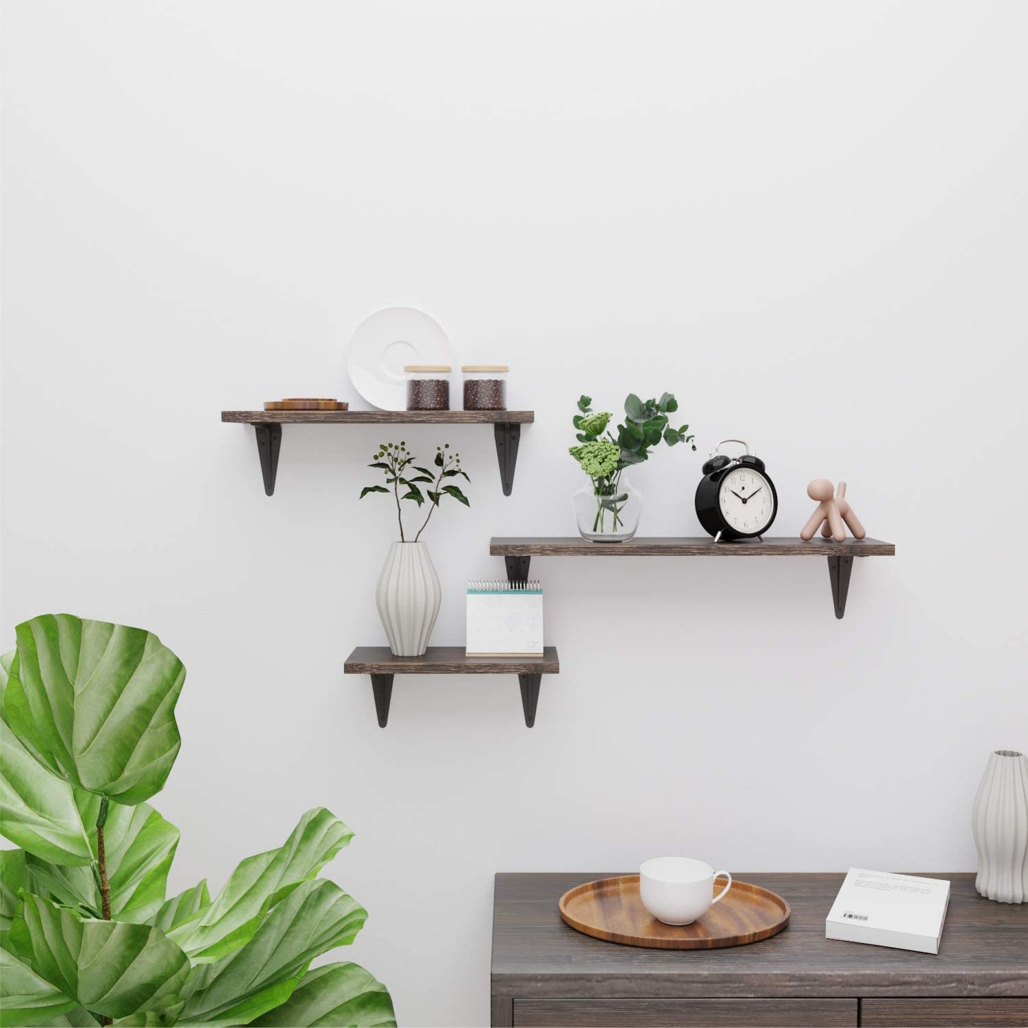 BAMFOX Floating Shelves Wall Mounted Set of 3, Rustic Bamboo Wall Storage Shelves