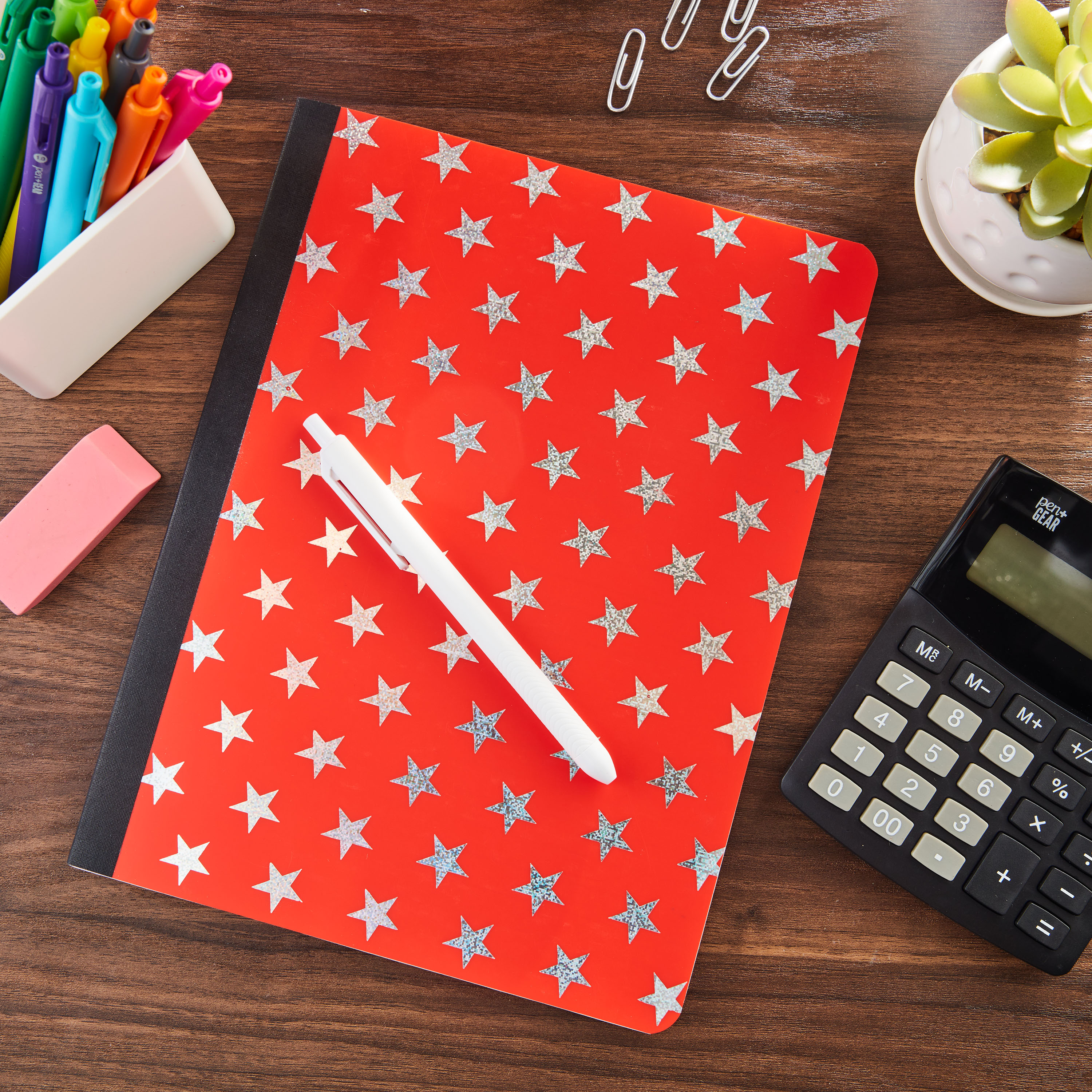 Pen+Gear Poly Composition Book, Red with Foil Stars, Wide Rule
