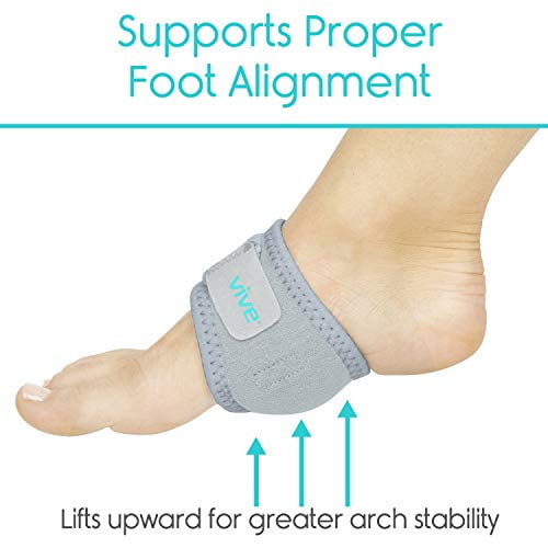 Vive Arch Support Brace (Pair) – Plantar Fasciitis Gel Strap for Men, Woman – Orthotic Compression Support Wrap Aids Foot Pain, High Arches, Flat Feet, Heel Fatigue – Insert for Under Socks (Gray)