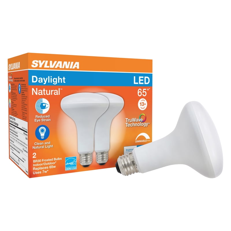 - Sylvania Natural BR30 E26 (Medium) LED Floodlight Bulb Daylight 65 W 2 pk
