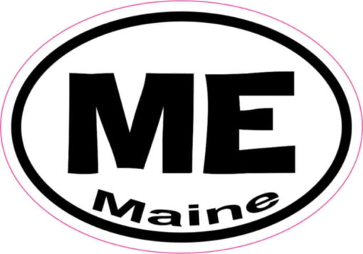 3in x 2in (76.2mm X 50.8mm) Oval ME Maine StickerOval ME Maine Design:This sticker is 3 inches wide by 2 inches tall when applied. The oval-shaped sticker bears the state abbreviation, ME, in black letters on a white background. Underneath, the state name, Maine, appears in black letters, curved to complement the black line that runs just inside the edge of the sticker. This sticker is perfect for native Mainiacs and visitors alike!