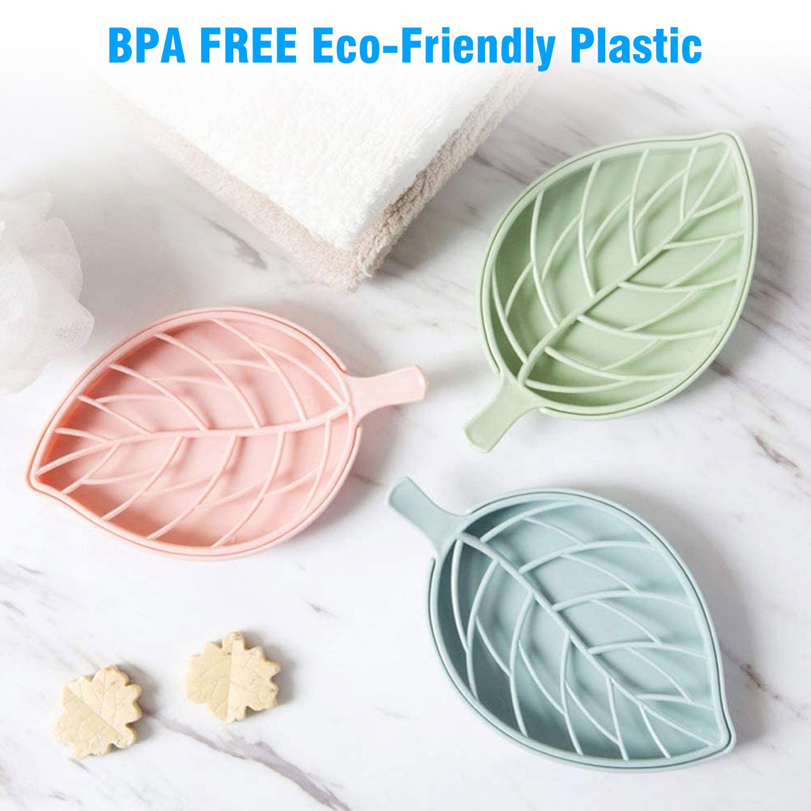 EEEkit Plastic shower soap dishes’ hollow gaps can let water drain down to the bottom, ensuring the soap doesn’t become soggy & mushy. The tray can be taken out by lifting it with your finger or you can turn over the bar soap holder when cleaning it. Our leaf shape soap case holders are made of sturdy & recyclable PP, non-toxic, and eco-friendly. These soap containers(pink, green, and blue) are durable, lightweight, and easy to carry. Nowadays, with an increasing number of people having allergies & sensitivities, our soapbox with draining tray is not just a soap container but a health saver too. The soap sponge storage container’s size is 7” x 4” x 0.8”, fit for bathroom, kitchen counter, sink, etc.