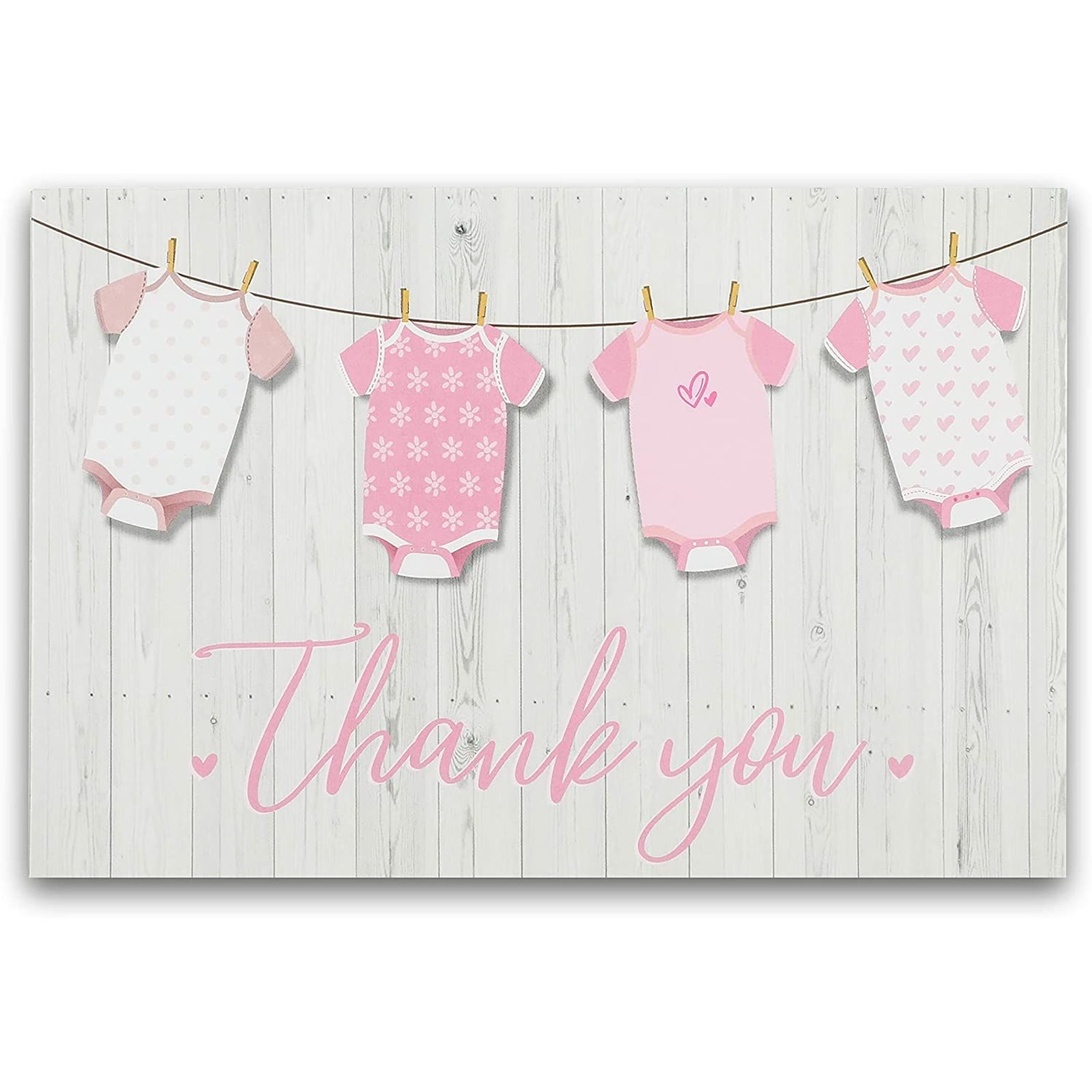 Send a heartfelt message to your loved ones with this set of 60 cute babny shower greeting cards with corresponding pink envelopes and stickers. Our diy greeting cards assortment features cute baby clothes designs with festive thank you text printed on the front. Each greeting card measures 6 x 4 inches with a blank interior to ensure you have more than enough space to send personalized wishes to friends and family. With a cute design, you’ll find the perfect greeting card to express your gratitude and well wishes to your loved ones.