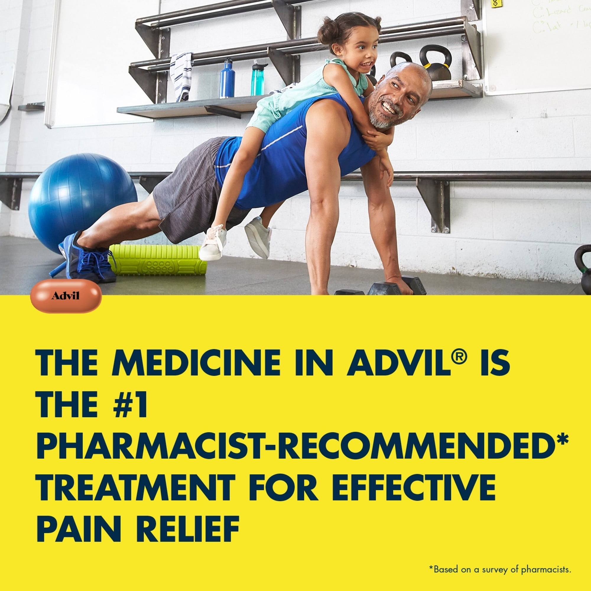 Advil stops pain where it starts, providing a powerful pain reliever. Whether you have a headache, muscle ache, backache, toothache, menstrual pain, minor arthritis and other joint pain, or aches and pains from the common cold, Advil brings relief where you need it. This fever reducer and pain medicine for adults is scientifically designed to block the chemicals in the body that cause pain and fever. Each tablet contains ibuprofen 200mg, a non-steroidal anti-inflammatory drug (NSAID). Coated Advil caplets are easy to swallow, providing relief that lasts for up to 6 hours. One Advil is all it often takes for headache relief, muscle ache relief, joint pain relief, or minor arthritis pain relief, and the medicine in Advil is what doctors use most for their own aches and pains. The world’s best-selling ibuprofen brand, Advil has provided safe, effective pain relief for over 35 years. Nothing’s stronger on tough pain than Advil. (1)