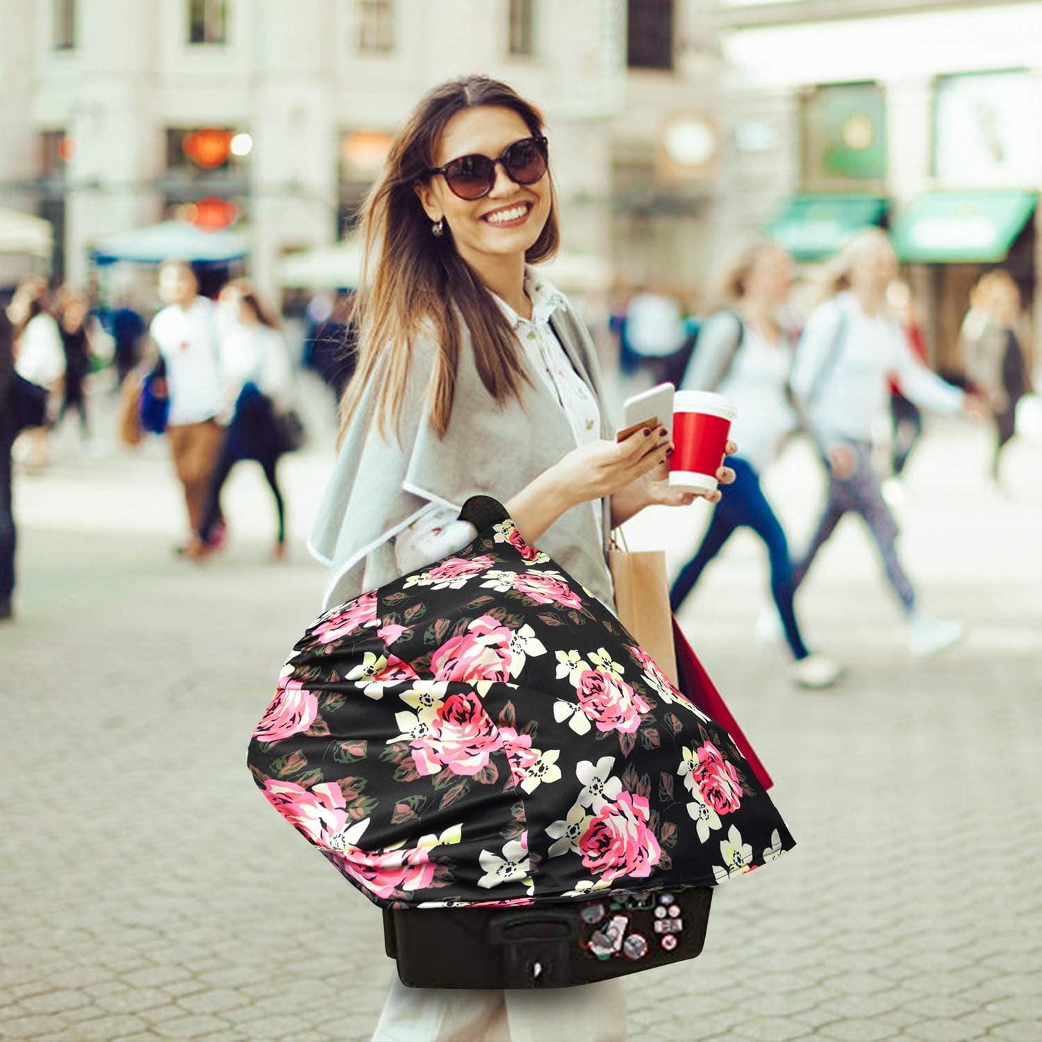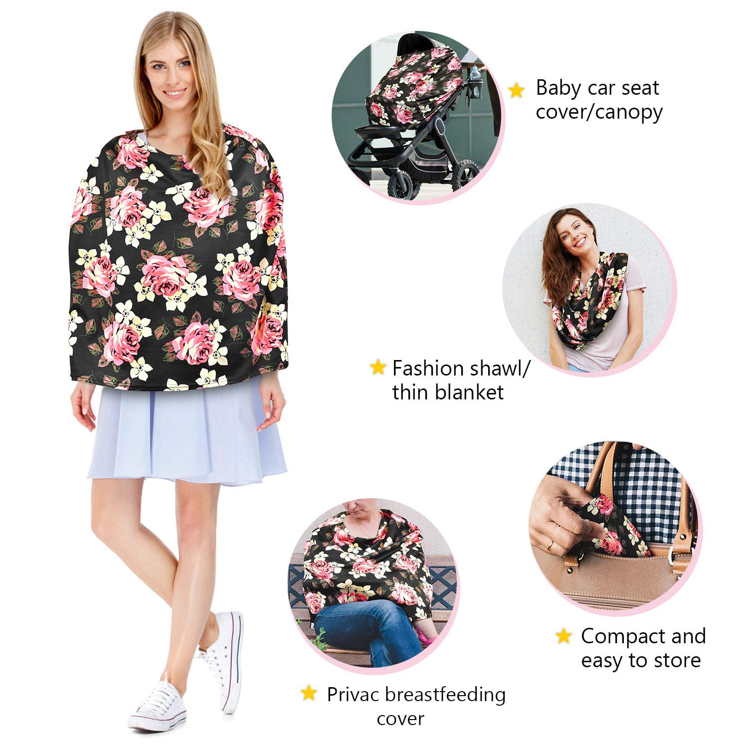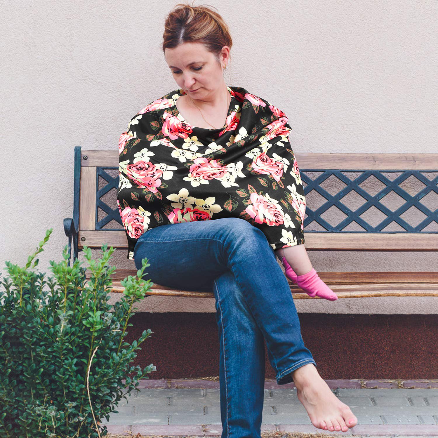 This beautiful black peony flowers nursing cover is made of elastic and breathable material which can provide your baby a comfortable and breathable eviroment to sleep peacefully without any interference. 360°coverage to weaken the light transmission perfectly, ensure the most privacy for you. 12 inched opening in the top can stretch to more 3-4 inches and 25 inches opening in the bottom can stretch to more 5-6 inches, and the height can be up to 25 inches. Get creative with our versatile design and stretchy, durable fabric. It can be used as Nursing Cover,Car Seat Canopy, Shopping Cart Cover, Baby Blanket,Changing Mat, Infinity Scarf and many more! Aokur nursing cover with simple wearing steps, just need a few seconds to wear it up, the top has a flexible opening for less light and more air, allowing you to look after your baby easily. Easy to carry and easy to solve your breastfeeding problem. Protects from-Pollen and on-looking strangers, Germs and bacteria, Wind & breezes, Summer heat, Sunlight, Dust, Elements, Bugs, Nosy Strangers.