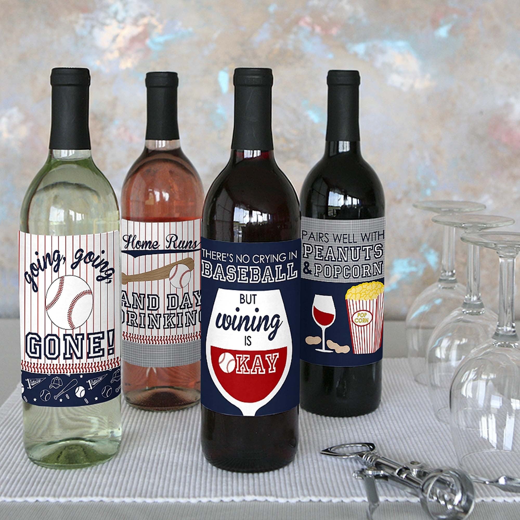 - UNIQUE GIFT IDEA: Baseball Wine Bottle Labels also make a great gift idea. Add Batter Up – Baseball Wine Bottle labels to a favorite bottle of wine or spirits for a special baby shower or birthday gift. Use each wine label on a favorite beverage bottle and gift individually or create an impressive baby shower or birthday gift basket using all 4 labels on coordinating wine or liquor bottles. Wine bottle labels will easily give your baby shower or birthday gift a personal touch!