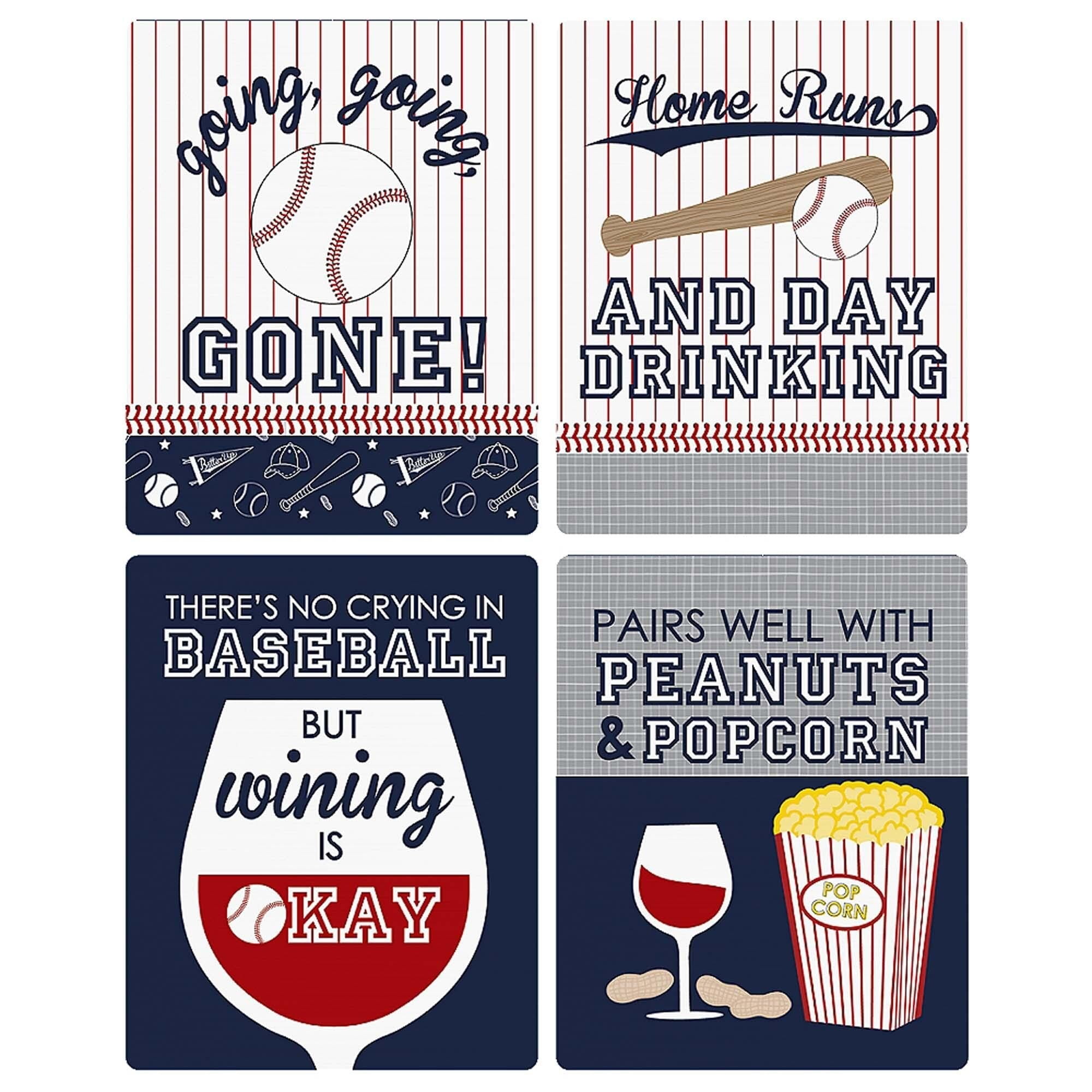 - Batter Up – Baseball Wine Bottle Gift Set INCLUDES Set of 4 baseball wine bottle sticker labels in the baseball theme.