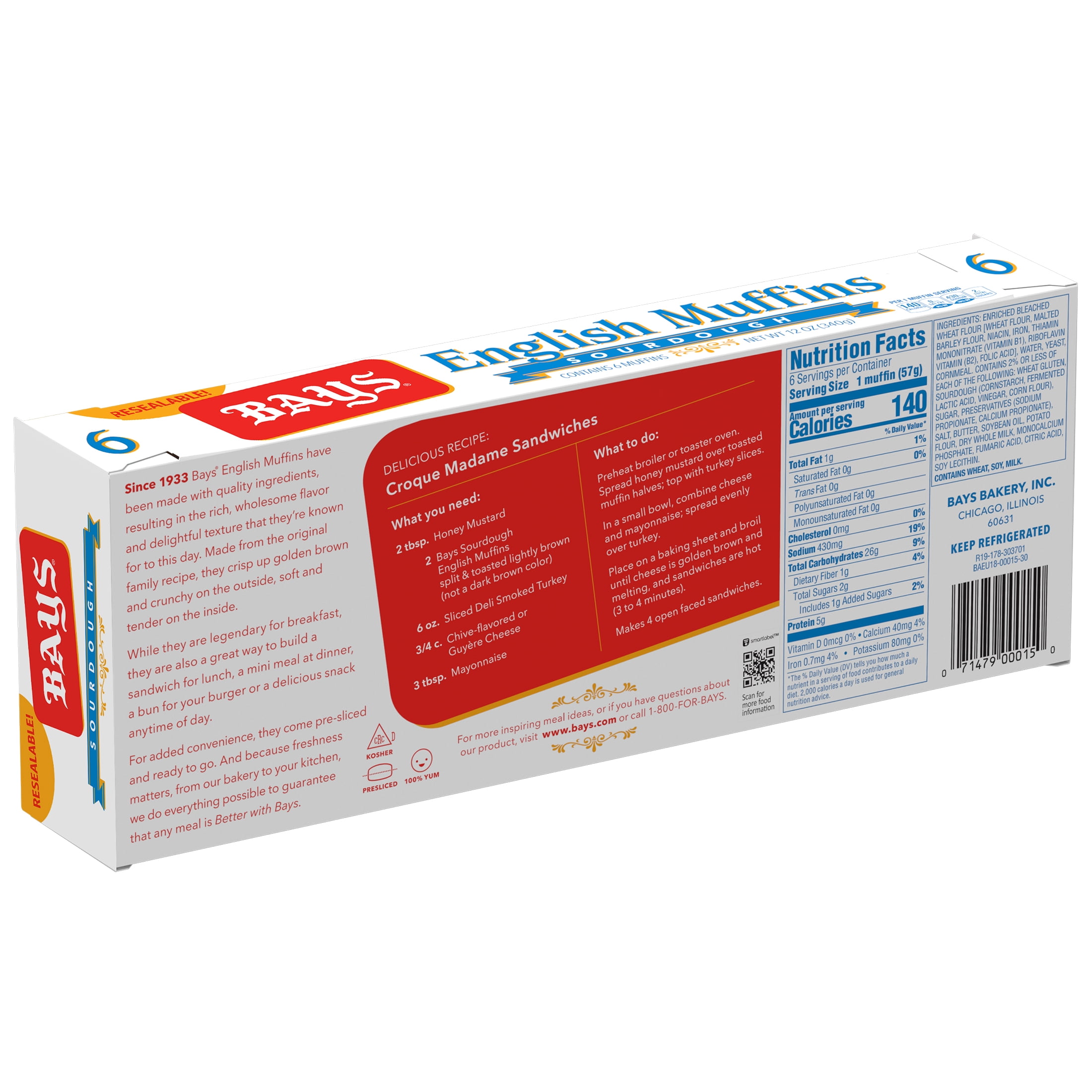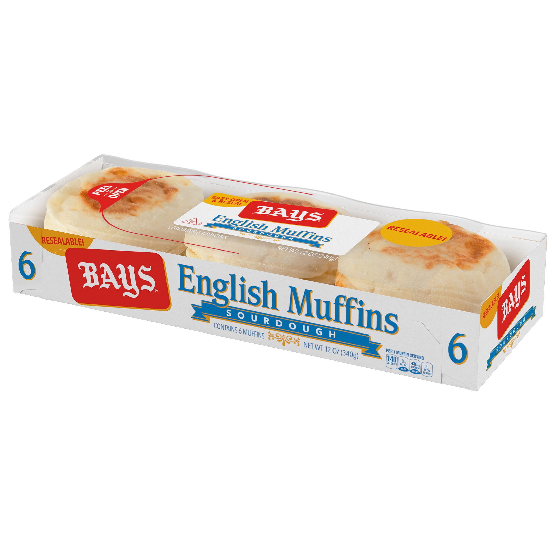 - 6 Bays Sourdough English Muffins per container; resealable and pre-sliced for convenience