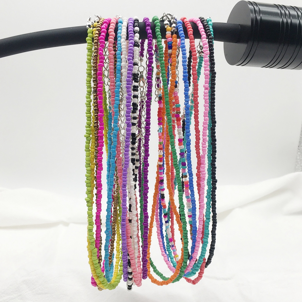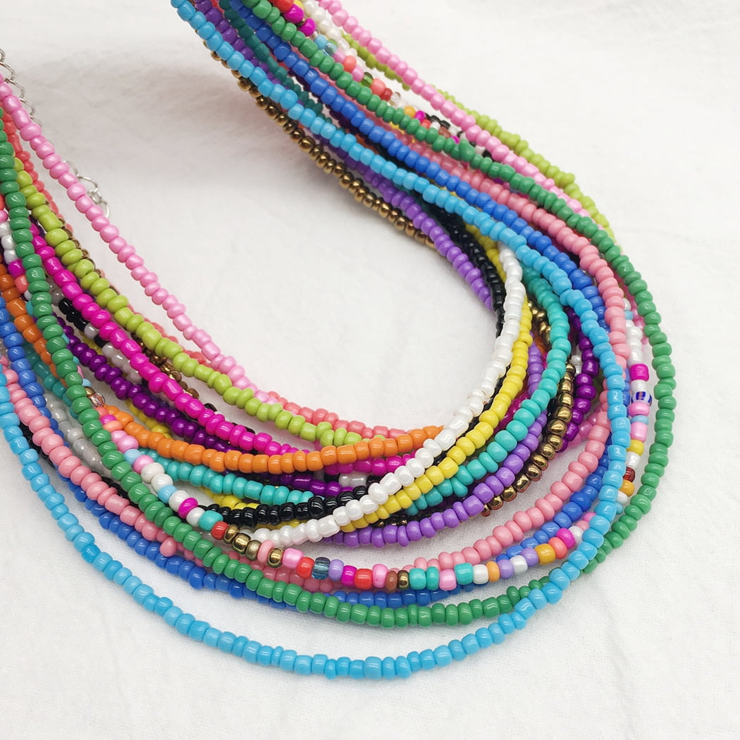 Beaded necklace color: Multicolor, pink, light green, dark green, blue, lake blue, rose red, dark pink, orange, red, yellow, dark blue, black, white, purple, black & white