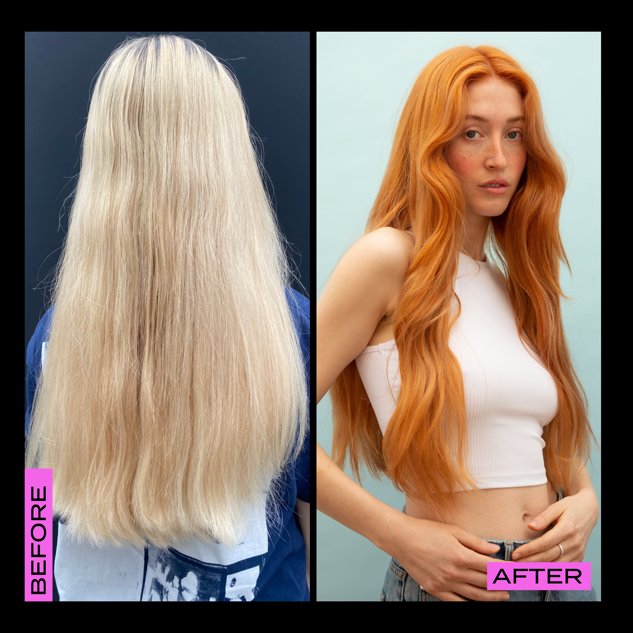 Unleash a flaming, fiery finish or warm ginger undercoat with the Bleach London Semi-Permanent Hair Toner Cream, Copper, 1.3 oz. This gentle, semi-permanent hair dye banishes yellow, brassy tones from bleached blond hair for an even copper base. Apply the toner to freshly bleached blond hair, wait 10-20 minutes, rinse, condition, and then rinse again. The hair toning kit also comes with a sachet of Bleach London’s Reincarnation Hair Mask to help hydrate hair strands post-dye for a vibrant and healthy shine. One Copper hair toner kit is suitable for very short, cropped hair and roots up to 1 inch long. Medium hair will need two kits while long, thick hair will need at least three toner kits for complete coverage. Achieve professional and on-trend quality color results at home with the Bleach London Copper Semi-Permanent Hair Toning Kit!